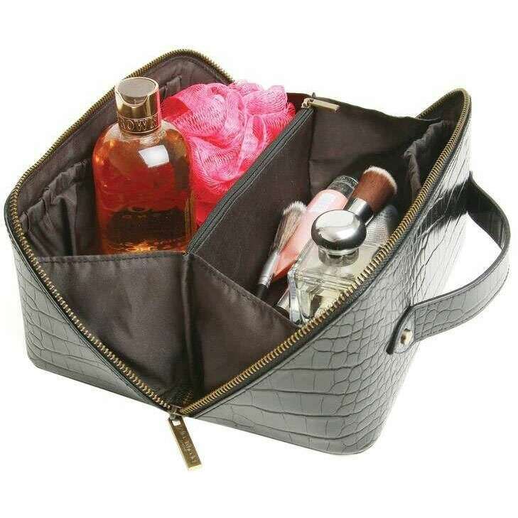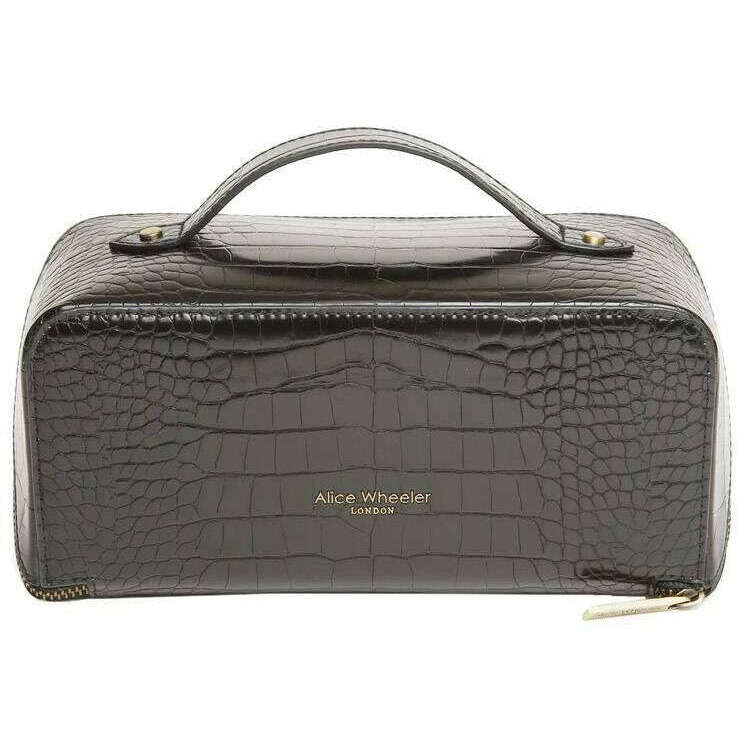 Wprowadzając ten luksusowy obudowę pociągu Alice Wheeler London, jest produkowany ze 100% wegańskiej sztucznej skóry w kolorze czarnego croc. Mierzy 12 cm (wysokość) x 24 cm (szerokość) x 12 cm (głębokość). Wszystkie torby są kompletne w opakowaniu Alice Wheeler London. Luksusowa obudowa Alice Wheeler London - Black Croc to idealna futerał na przybory toaletowe podczas odejścia lub przechowywania do makijażu i produktów kosmetycznych. Luksusowa konstrukcja ma zapinane zamykanie i otwiera się na duży główny komora z wewnętrznymi kieszeniami dla mniejszych niezbędnych rzeczy. Górny uchwyt sprawia, że ​​transport jest łatwy, a stylowa branding po obu stronach dodaje eleganckiego akcentu.