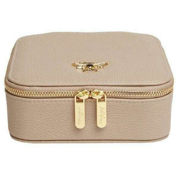 Używając beżowej wegańskiej sztucznej skóry i sztucznego zamszowego wnętrza, to biżuteria podróżna Alice Wheeler London jest idealna dla kobiet i musi mieć. Mierzy 13,5 cm (wysokość) x 13,5 cm (szerokość) x 5 cm (głębokość). Wszystkie pudełka biżuterii są wyposażone w opakowanie Alice Wheeler. Alice Wheeler London Travel Jewellery Box - Stone Beige stanie się ulubieńcem wszechczasów ze wspaniałą organizacją i doskonałym rozmiarem do wsuwania w każdą torbę, niezależnie od okazji. Wyposażony w rolkę, idealną do kolczyków i najczęściej zużyte pierścienie, 3 małe przedziały dla mniejszych kawałków, 2 większe przedziały boczne dla naszyjników i bransoletek oraz lustro na pokrywce. Złoto zamknięte zamek błyskawiczne oferuje bezpieczeństwo i luksus. W komplecie z charakterystycznym logo pszczoły miodnej ozdobiono na szczycie tej sprawy.