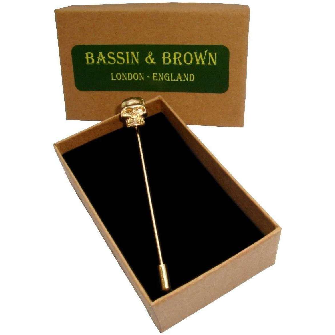 Z vintage Silver znajduje się srebrna męska szpilka do klapy przez projektanta Bassina i Browna. Wszystkie szpilki Lapel są kompletne w pudełku prezentacyjnym Bassin i Brown. Bassin and Brown Skull Lapel Pin - srebro będzie Twoim akcesorium przy tych specjalnych okazjach, ponieważ przynosi inteligentny akcent stroju. Z pewnością przyciągną oczy, ten kawałek jest obowiązkowy dla Twojej kolekcji.