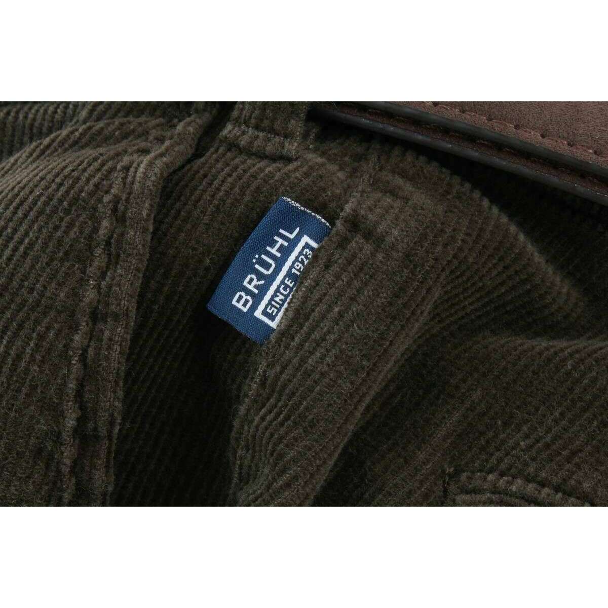 Męskie spodnie z cienkiego sznurka Parma b Giza marki BRUHL są wykonane w 99% z bawełny i 1% elastanu i są prezentowane w kolorze zielonym. Również ciemnozielone spodnie mają jednolity wzór. Zaleca się pranie w temperaturze 40 stopni, aby zachować te spodnie w dobrym stanie. Wszystkie spodnie są w komplecie z metkami bruhl. Spodnie BRUHL Parma B Giza z cienkiego sznurka – ciemnozielone są wykonane z luksusowej bawełny Giza, dzięki czemu mają miękkie i wyrafinowane wykończenie, które zapewnia wyjątkowe uczucie noszenia. Te spodnie zostały zaprojektowane tak, aby łączyć klasyczny krój z nowoczesnym komfortem, dzięki czemu są uniwersalnym wyborem na każdą okazję. Posiadają elastyczny pas, który zapewnia elastyczność i wygodne dopasowanie przez cały dzień. Z przodu znajdują się dwie kieszenie ćwiartkowe zapewniające łatwy dostęp, a z tyłu dwie kieszenie zapinane na guziki umożliwiające bezpieczne przechowywanie. Konstrukcja zawiera osiem szlufek, które zapewniają schludny i uporządkowany wygląd, gdy są noszone z paskiem. Szerokość u dołu wynosi 16 cali, tworząc zrównoważoną i współczesną sylwetkę. Spodnie BRUHL Parma B, idealne do eleganckich strojów casualowych lub biurowych, zapewniają wyrafinowanie bez uszczerbku dla wygody.