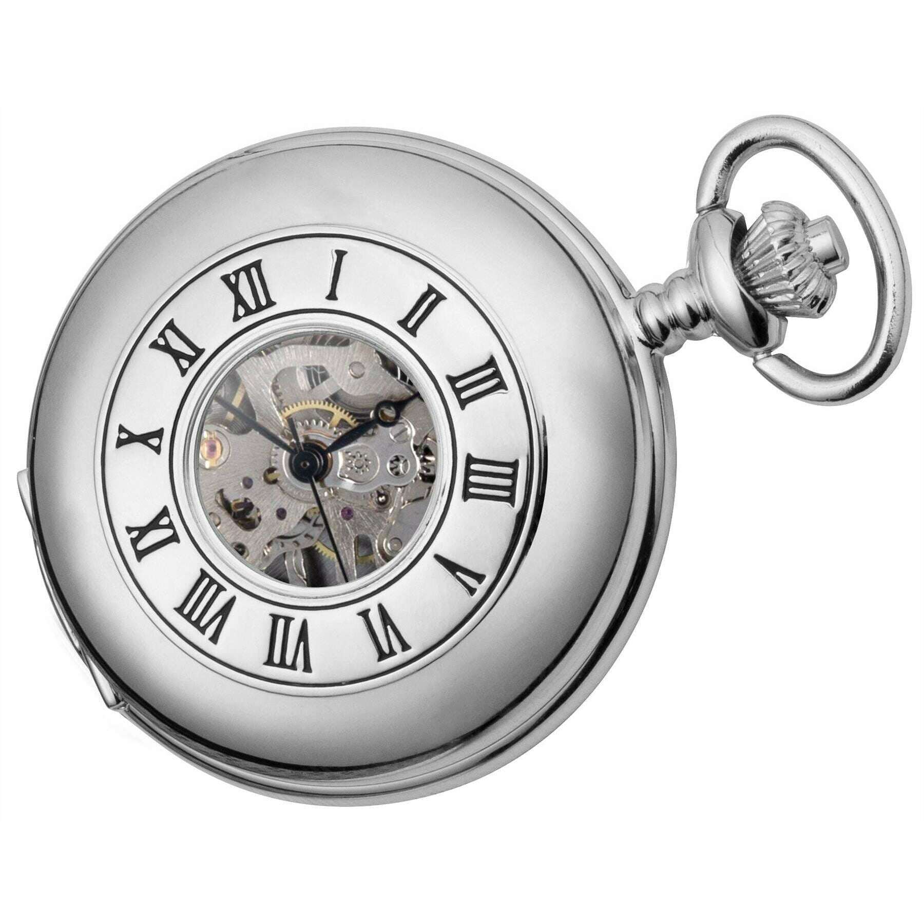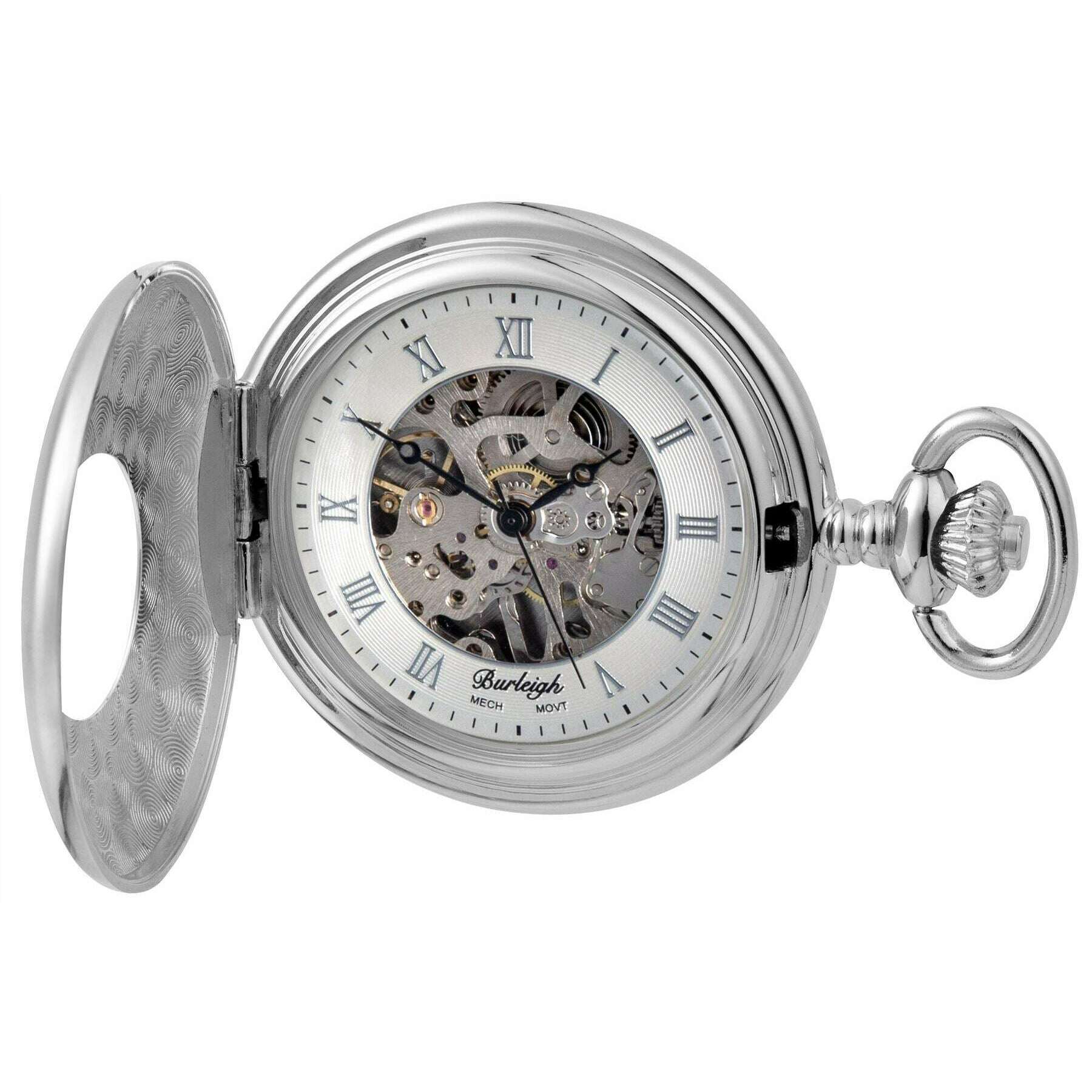 Mechaniczny zegarek kieszonkowy Burleigh Half Hunter – chromowo-srebrny