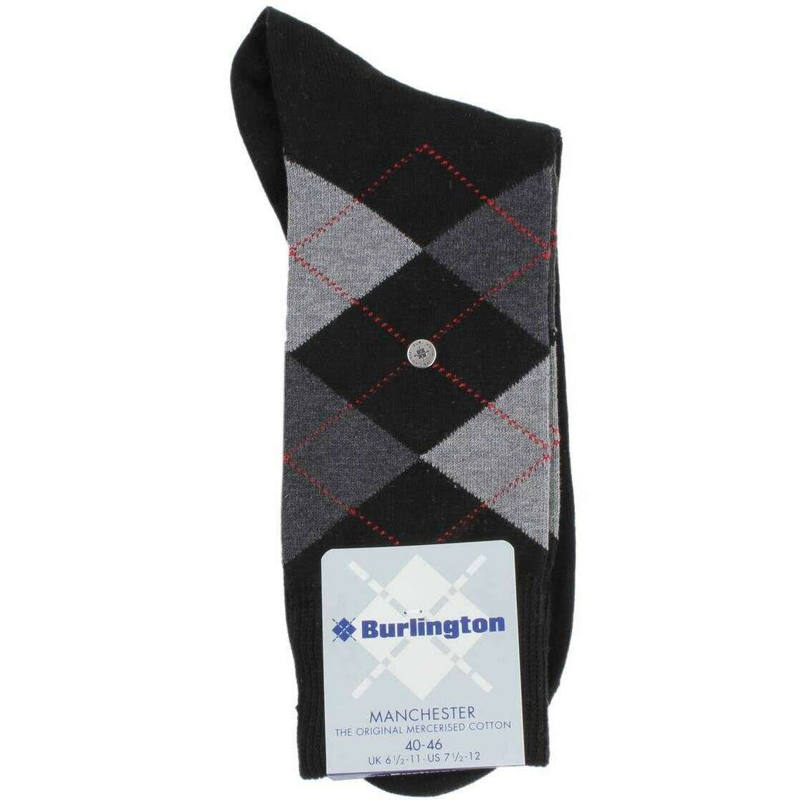 Burlington Argyle Mercerired Cotton Socks - Black/Grey