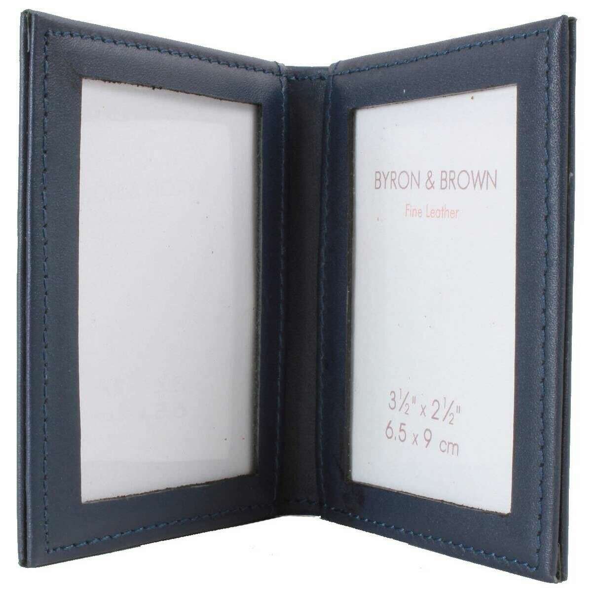 Byron i brązowa składana skóra nappa 2 -krotnie 3,5 x 2,5 rama podróżna - granatowa