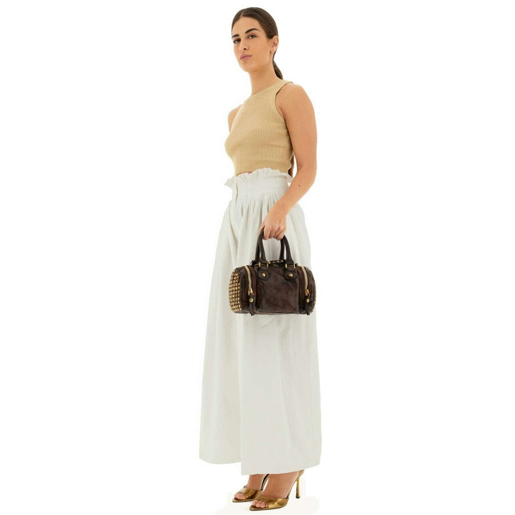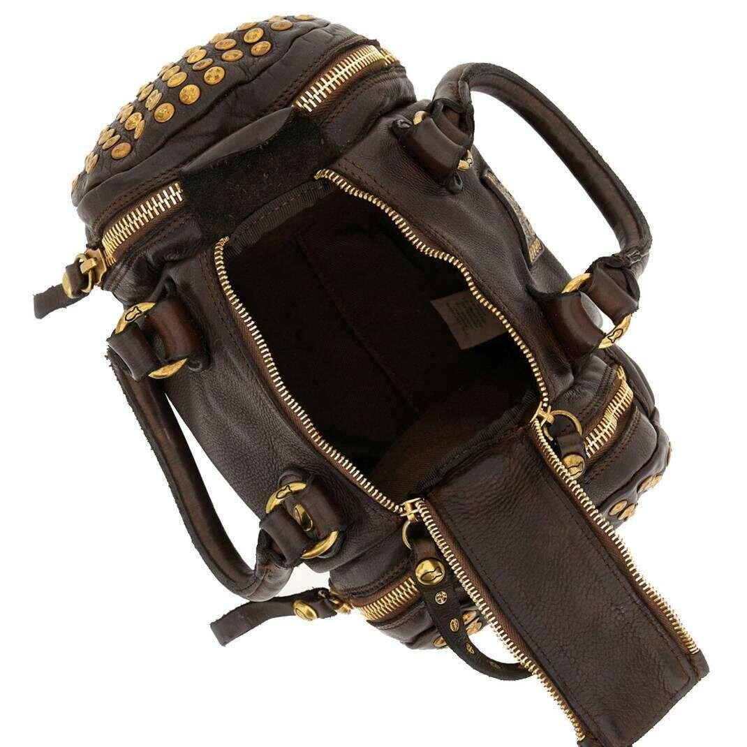 Damska torba do kręgli kura britney marki Campomaggi jest wykonana w 100% ze skóry bydlęcej i jest dostępna w kolorze brązowym. Wymiary: 15 cm (wysokość) x 22 cm (szerokość) x 15 cm (głębokość). Campomaggi wyprodukowało tę torbę do kręgli Kura Britney we Włoszech. Aby utrzymać torbę w dobrym stanie, zaleca się szczotkowanie wilgotną szmatką i unikanie stosowania detergentów. Wszystkie torby są dostarczane w komplecie z opakowaniem Campomaggi. Torba do kręgli Campomaggi Kura Britney - Moro Brown to elegancki dodatek w stylu vintage, wykonany z wysokiej jakości skóry, która została zniszczona w procesie garbowania roślinnego, czyli procesu wykorzystującego naturalne składniki w celu uzyskania wspaniałego koloru. Dwie boczne kieszenie ozdobione złotymi ćwiekami doskonale nadają się do uporządkowania drobnych drobiazgów, a duże wnętrze pomieści wszystkie niezbędne rzeczy na co dzień. Dwa uchwyty do noszenia sprawiają, że jest to świetna torba podręczna lub może być również świetna jako torba na ramię z odpinanym regulowanym paskiem, który można dostosować do własnych upodobań w zależności od wyglądu.