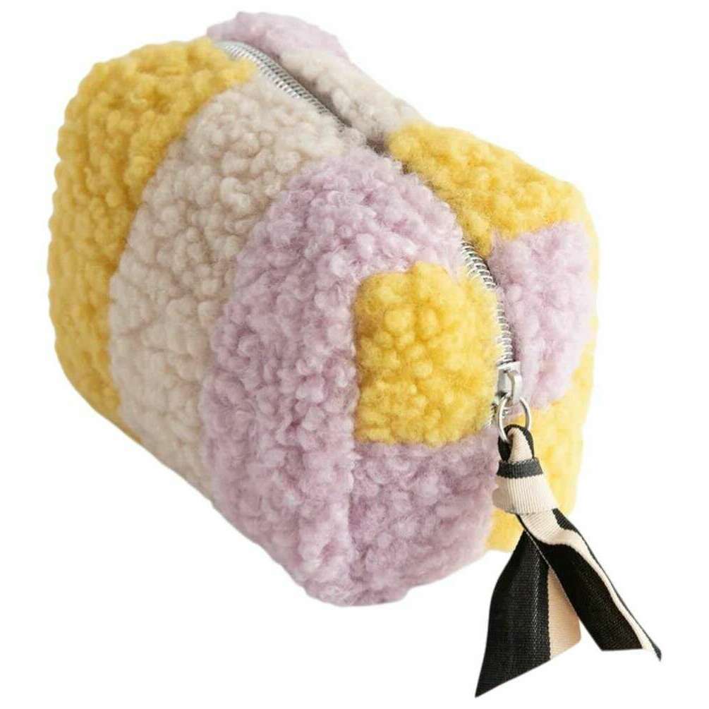 Kosmetyczka Caroline Gardner Multi Stripe Borg Mini Cube - liliowo-żółta