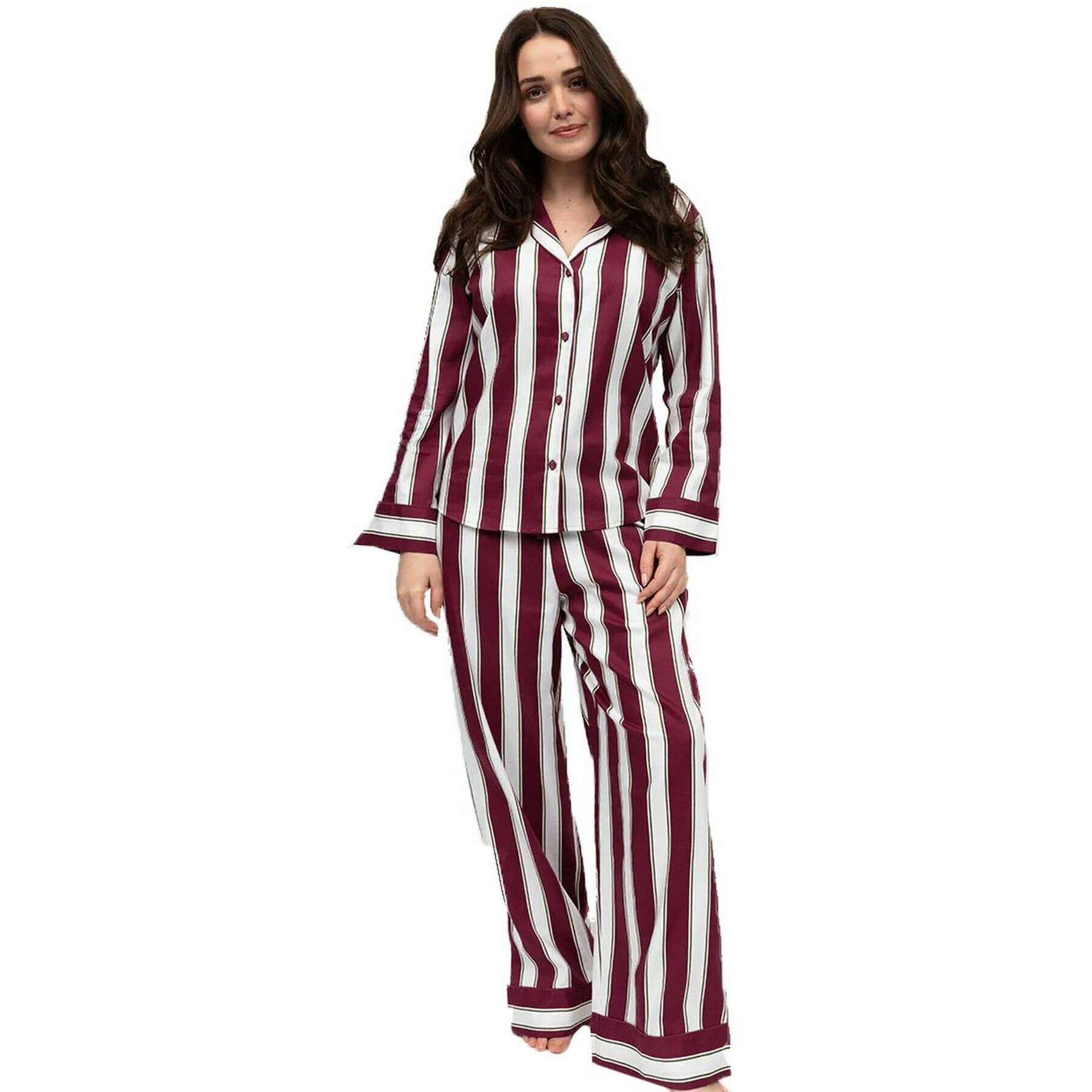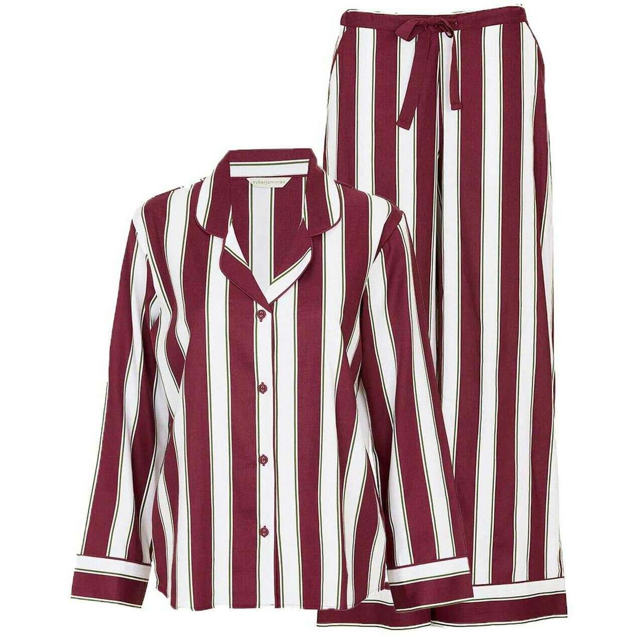 Zestaw piżamy w paski Cyberjammies Yasmin – wół krwisty burgund/biały