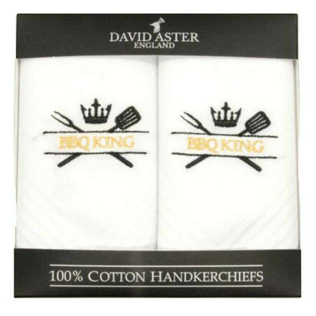 Haftowane chusteczki do nosa David Aster BBQ King - białe