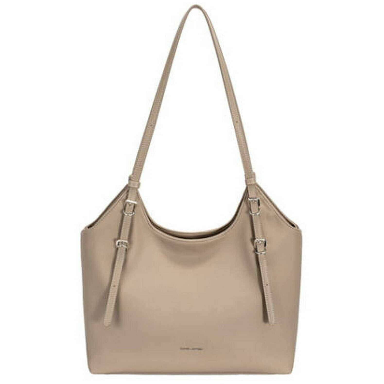 Duża torba na ramię David Jones z dwoma paskami - ciepły beżowo-szary