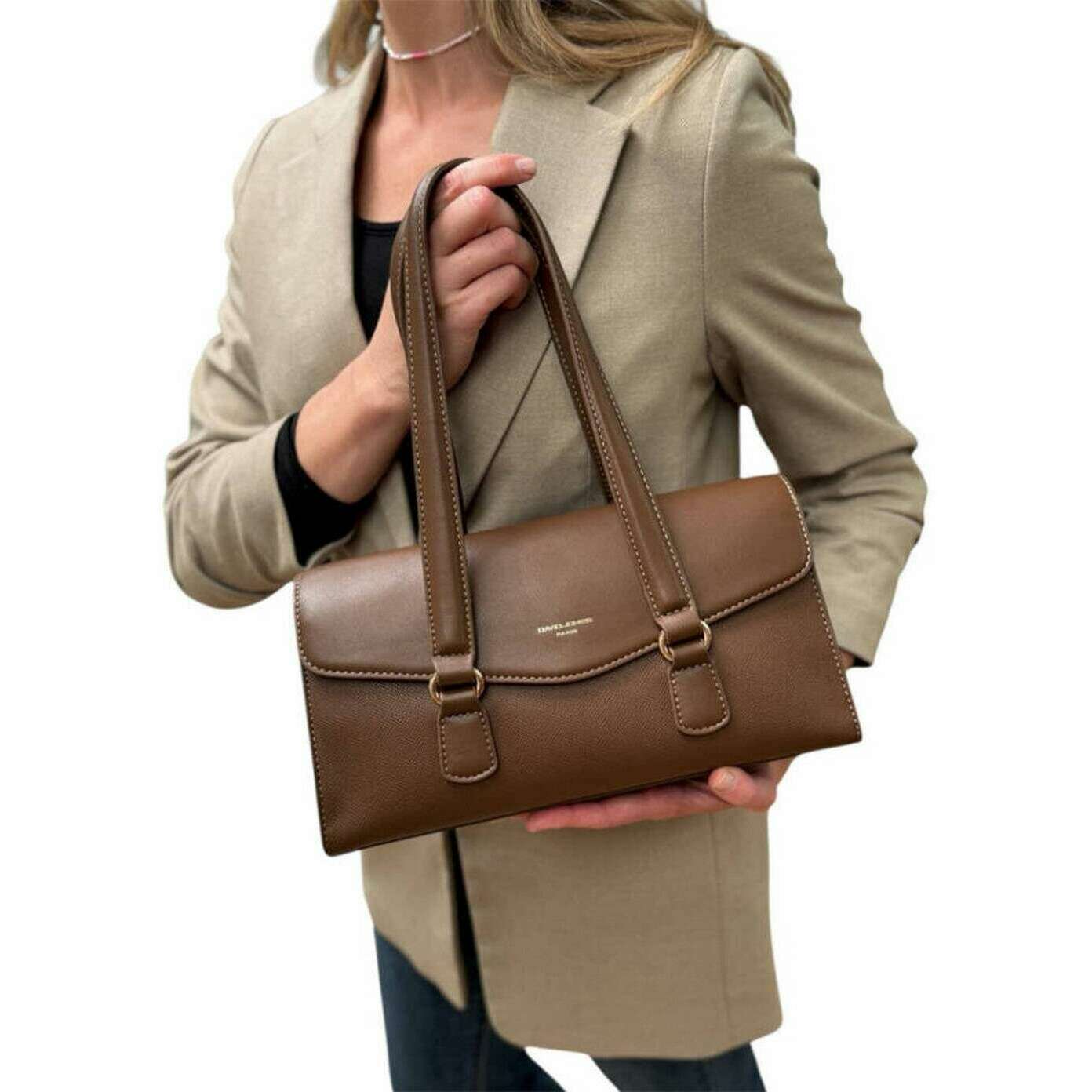 Długa i krótka torba na ramię David Jones z półklapką - kakaowy brąz