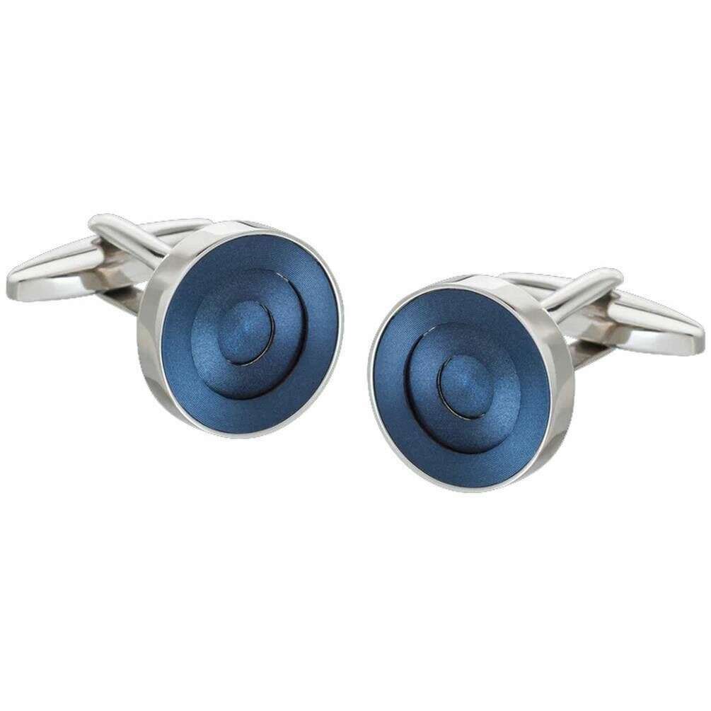 Spinki do mankietów David Van Hagen z koncentrycznym pierścieniem - niebieski/srebrny