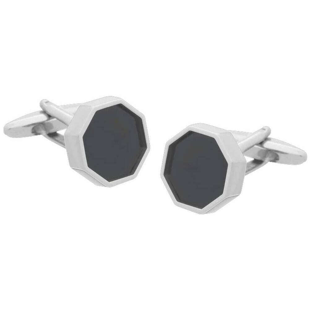 Ośmiokątne spinki do mankietów David Van Hagen Onyks - czarny/srebrny