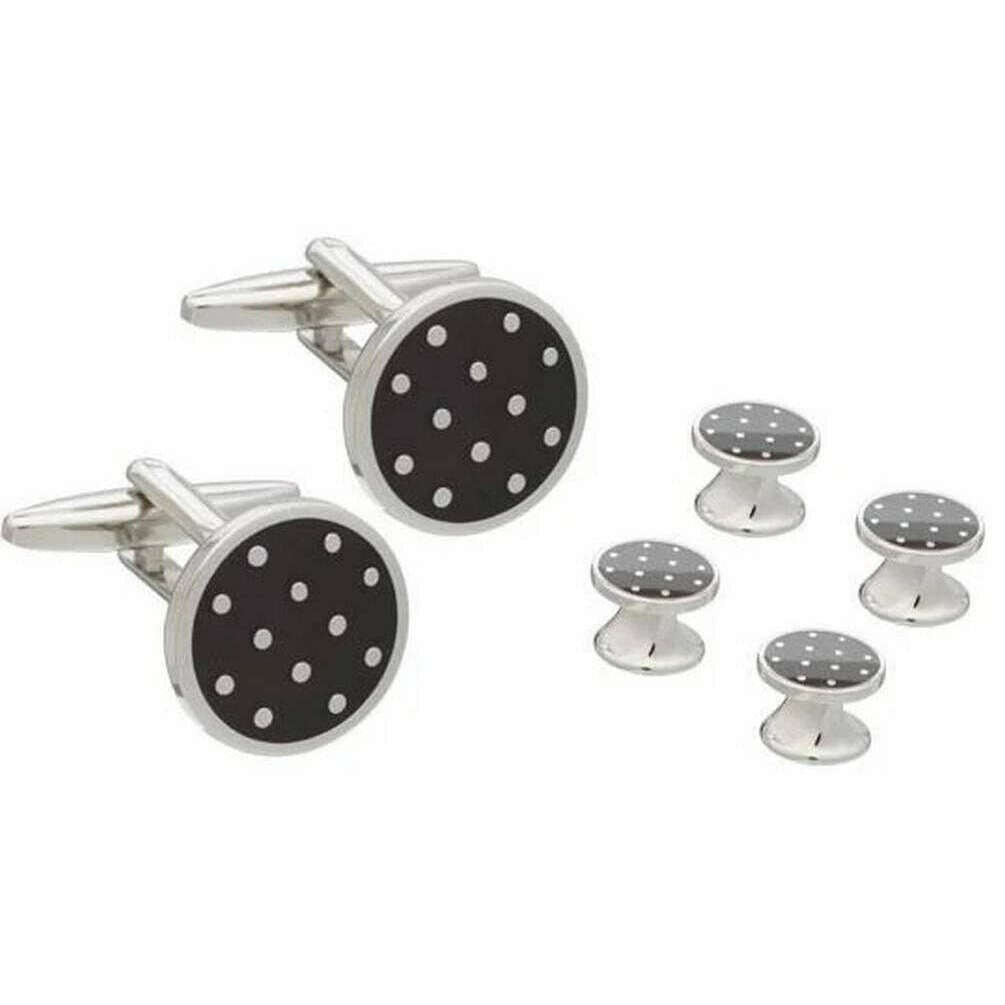 Zestaw ćwieków i spinek do mankietów Davida Van Hagena w kropki - czarny/srebrny