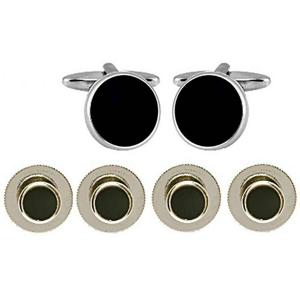 Zestaw okrągłych spinek do mankietów i wkrętek Davida Van Hagena - czarny/srebrny