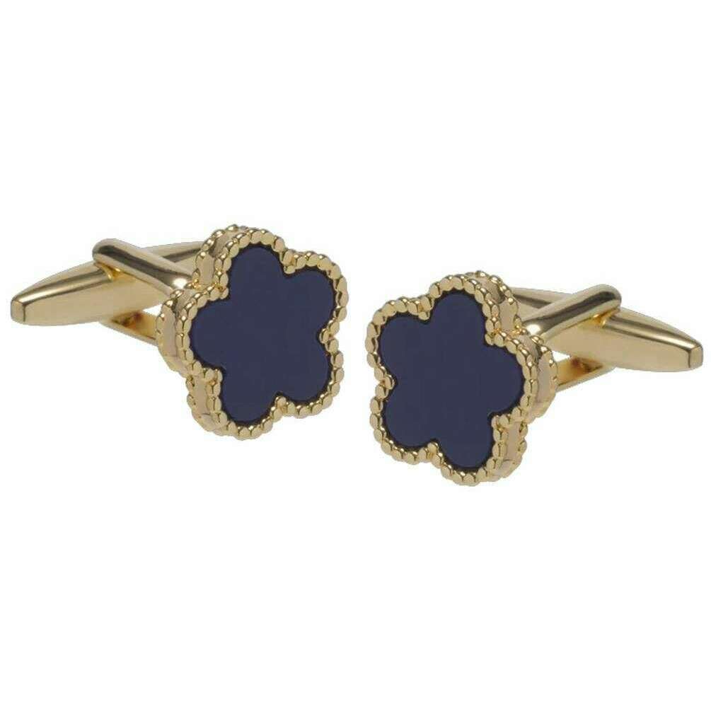 Spinki do mankietów David Van Hagen Sodalit w kształcie kwiatu - niebieski/złoty