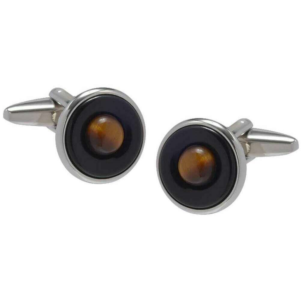• Zainspirowany Pierścieniami Saturna, środkiem kaboszonu tygrysiego oka, środkiem z kamienia onyksowego, naturalnymi kamieniami półszlachetnymi, standardową spinką do mankietów
