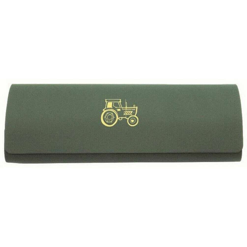 Męskie etui z tkaniny i okularów z wytłoczonym traktorem marki David Van Hagen jest wykonane z poliuretanu i prezentowane w kolorze zielonym. Wszystkie pudełka na akcesoria są dostarczane w komplecie z opakowaniem Davida van Hagena. Etui na okulary i szmatkę David Van Hagen z wytłoczonym wzorem w kolorze zielonym to elegancki i modny sposób na ochronę i bezpieczeństwo okularów. Wyposażone w magnetyczne zamknięcie ułatwiające dostęp i zamykanie, zamszowe wnętrze zapewniające miękkie miejsce na okulary oraz dopasowaną ściereczkę do czyszczenia. Projekt ciągnika dodaje spersonalizowanego charakteru.
