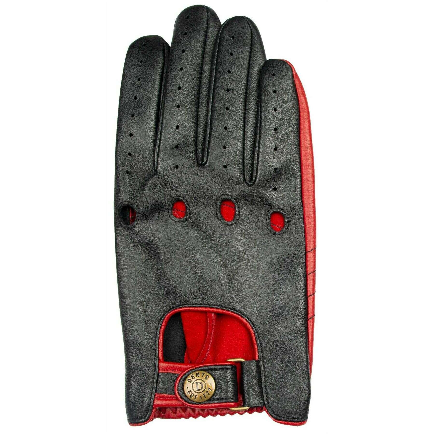 Dwukolorowe skórzane rękawiczki do jazdy Dents Aintree — czarny/czerwień jagodowa