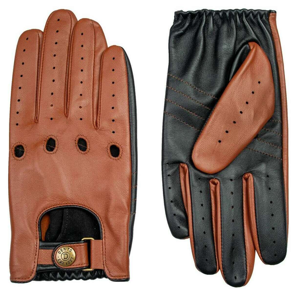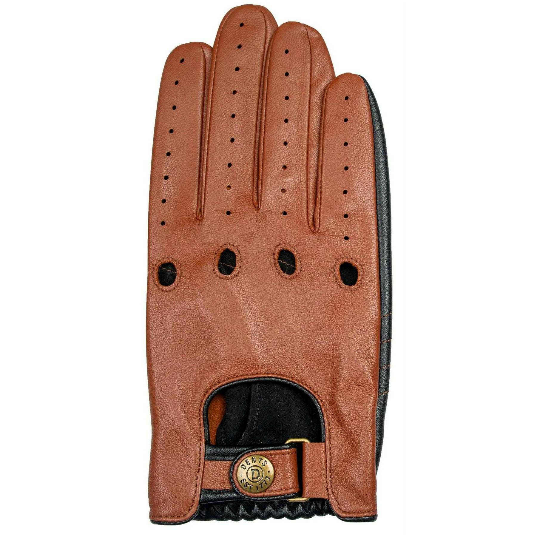 Dwukolorowe skórzane rękawiczki do jazdy Dents Aintree - koniakowy brąz/czarny