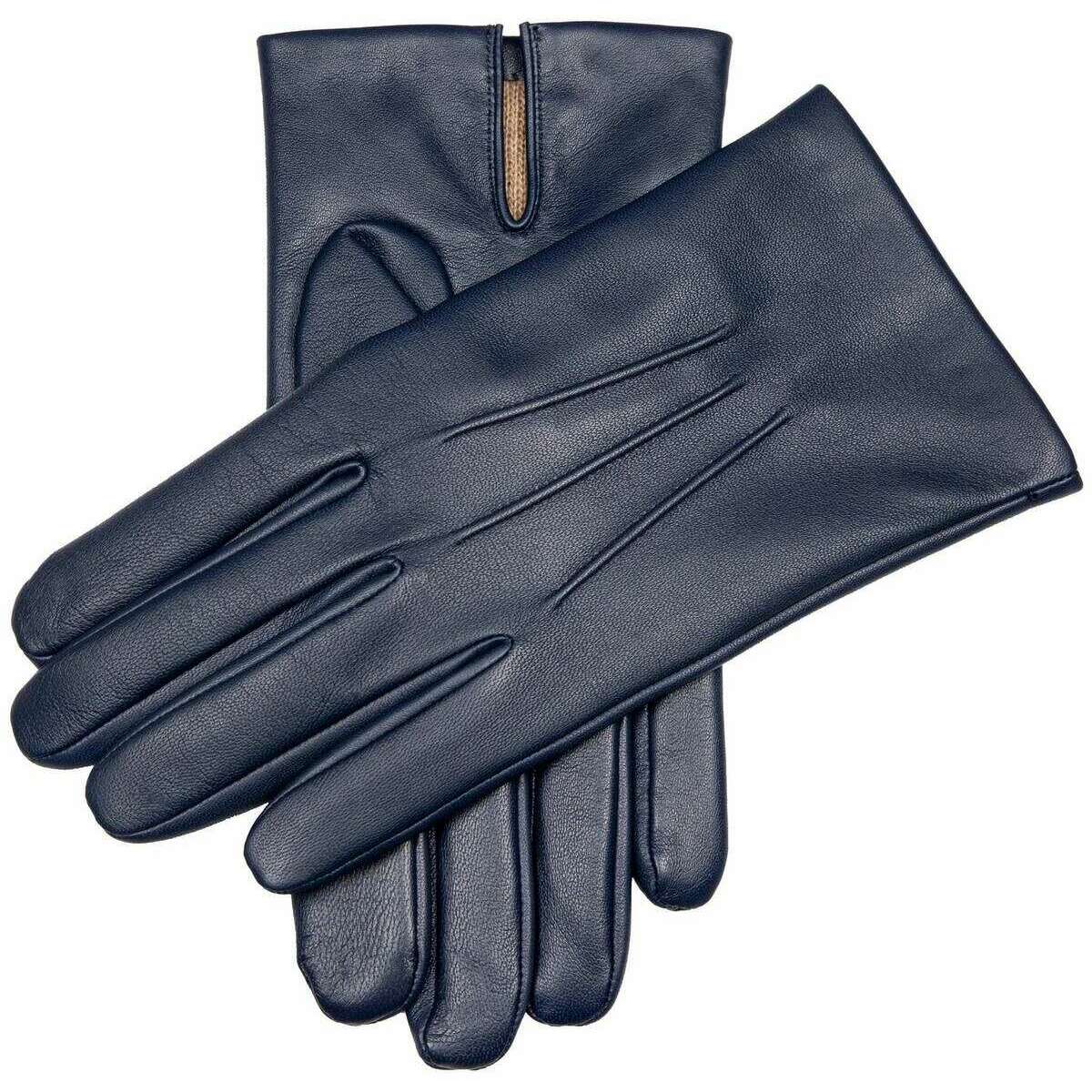 Trzypunktowe skórzane rękawiczki Dents Bath z wyściółką z kaszmiru – granatowe