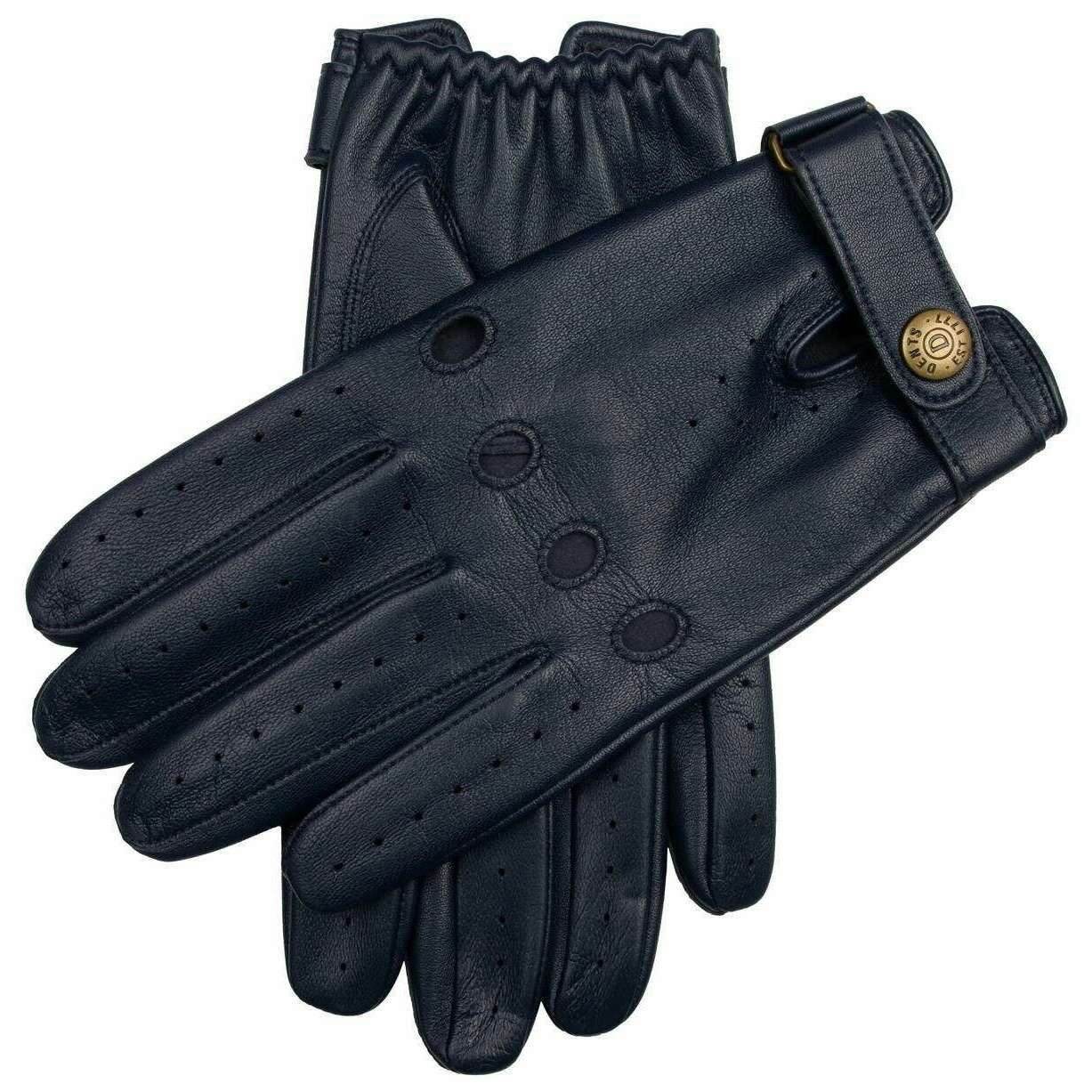 Te skórzane rękawice do jazdy Brooklands firmy Dents, wykonane w 100% z owczej skóry w kolorze granatowym, są idealne dla mężczyzn i obowiązkowe. Również granatowe rękawiczki mają prosty wzór. Wszystkie rękawice są wyposażone w metki z wgnieceniami. Skórzane rękawice do jazdy Dents Brooklands – granatowe różnią się od zwykłych rękawic do jazdy samochodem, ponieważ nie mają wycięć na plecach, co nadaje im wyjątkowe wykończenie. Rękawice mają misterne detale, takie jak perforowane otwory na palcach i dłoniach, otwory na kostki oraz szwy wewnętrzne zapewniające schludne wykończenie. Posiada centralnie zapinany pasek na nadgarstek z elastycznymi nadgarstkami i zatrzaskiem Dents, który zapewnia użytkownikowi bezpieczne i wygodne dopasowanie.
