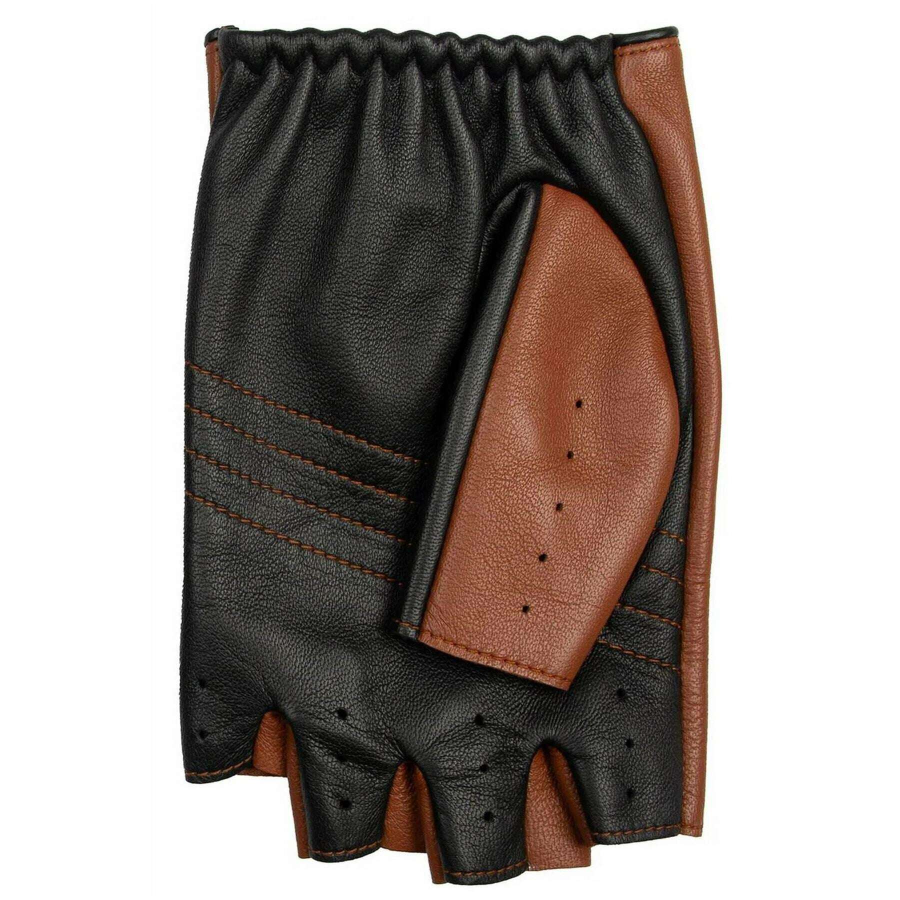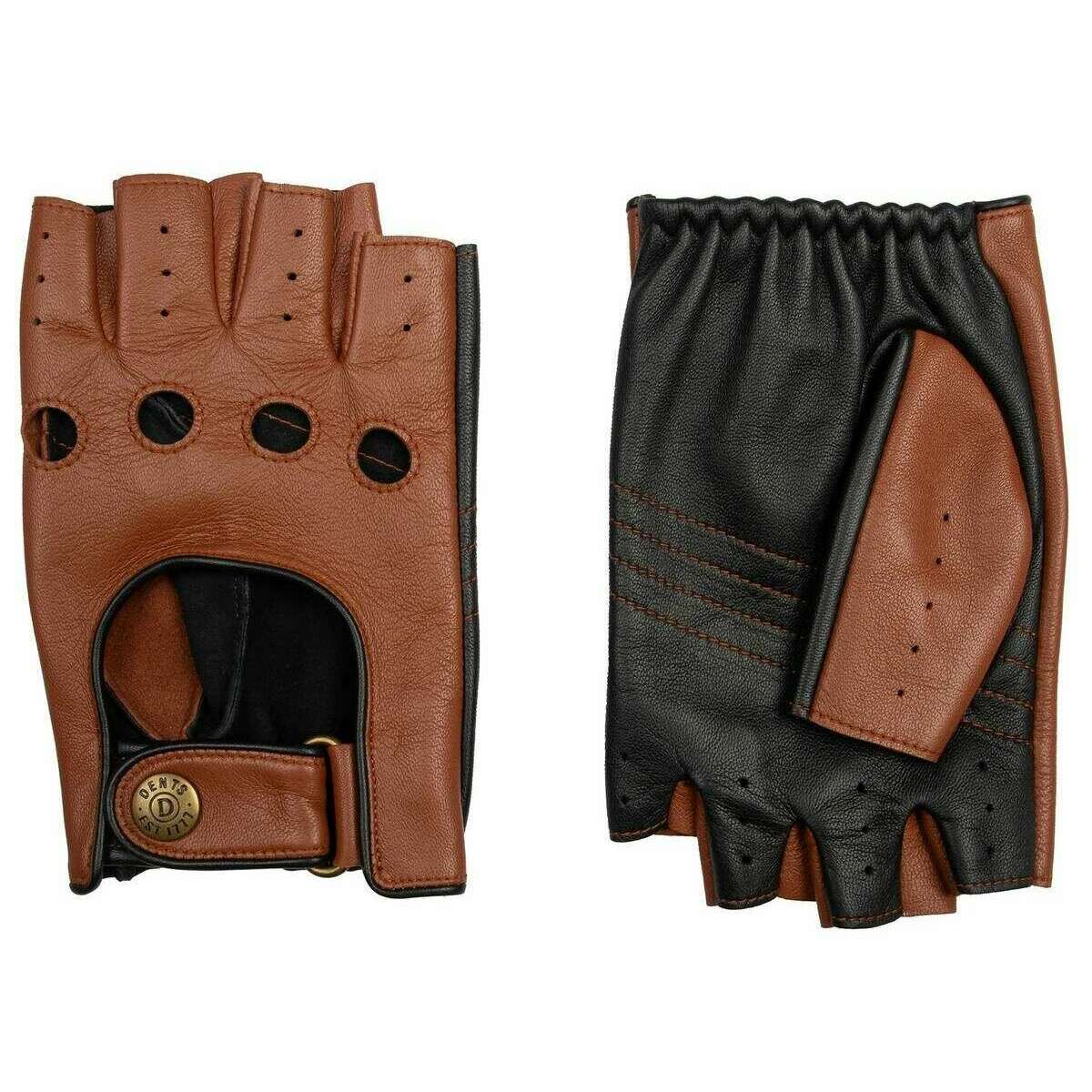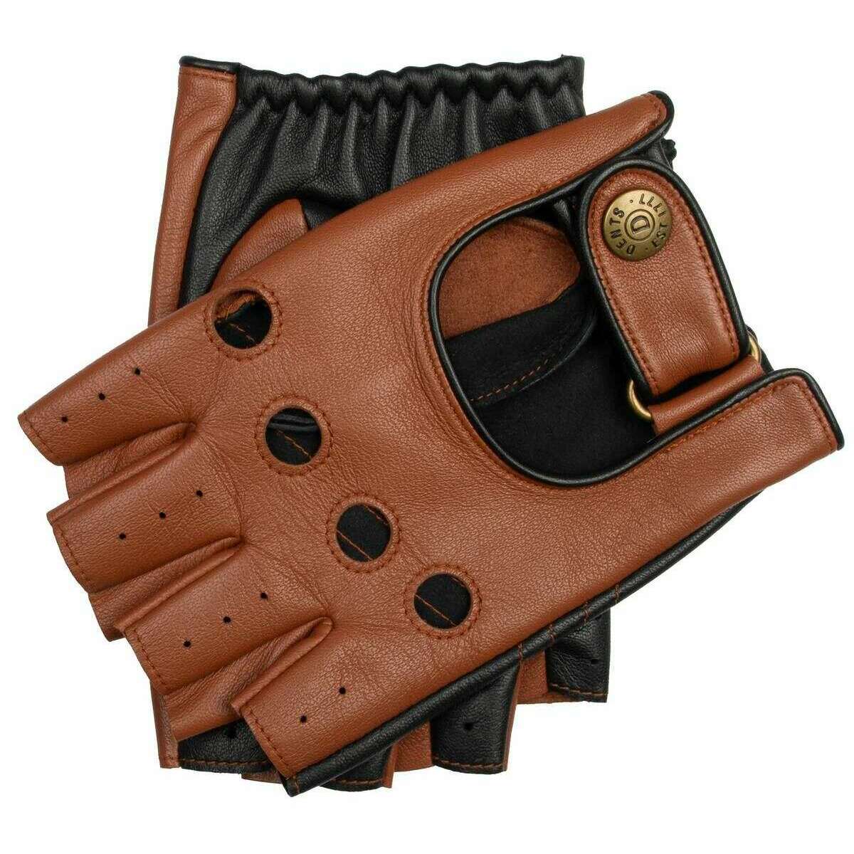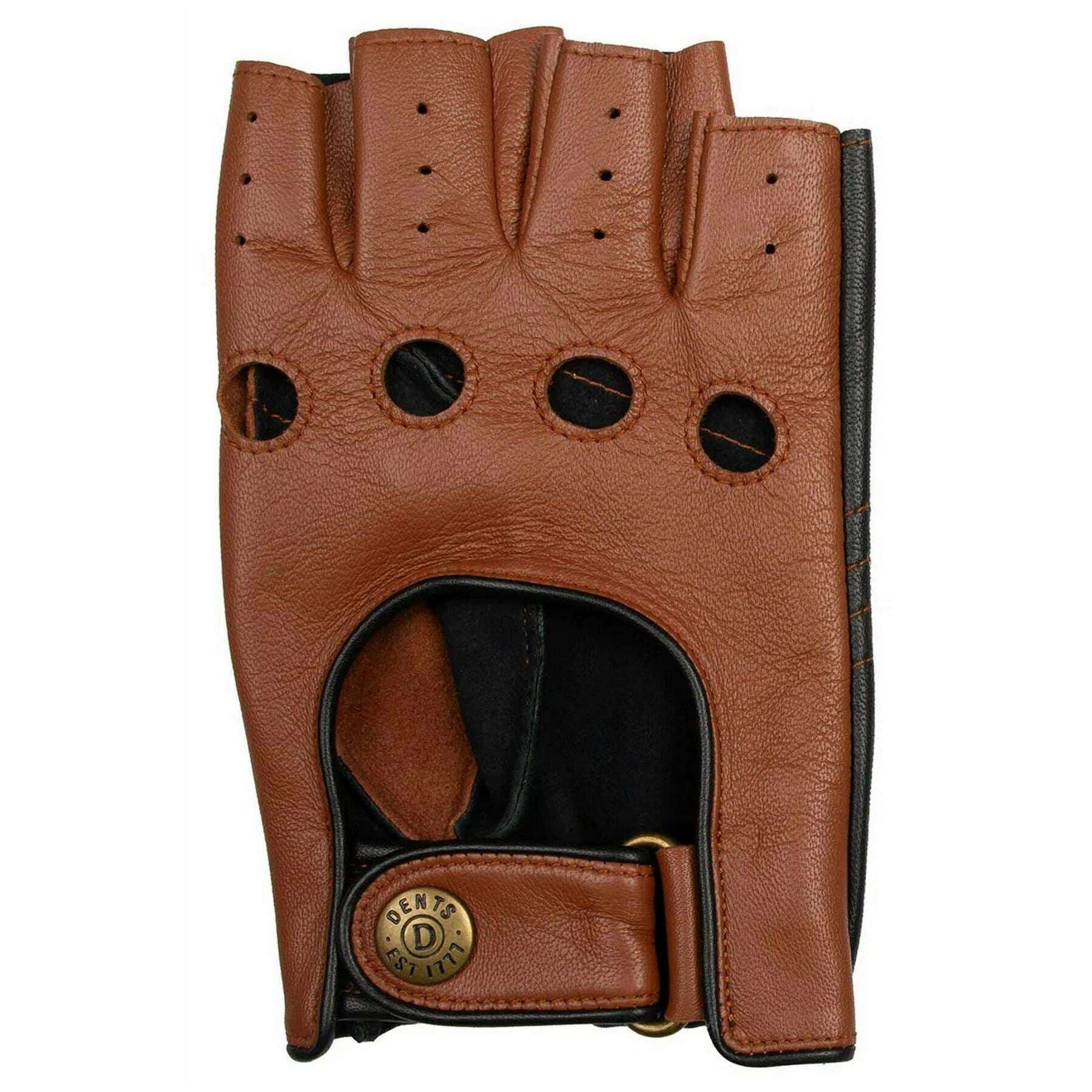 Dwukolorowe skórzane rękawiczki do jazdy Dents Cadwell bez palców – koniakowy brąz/czarny