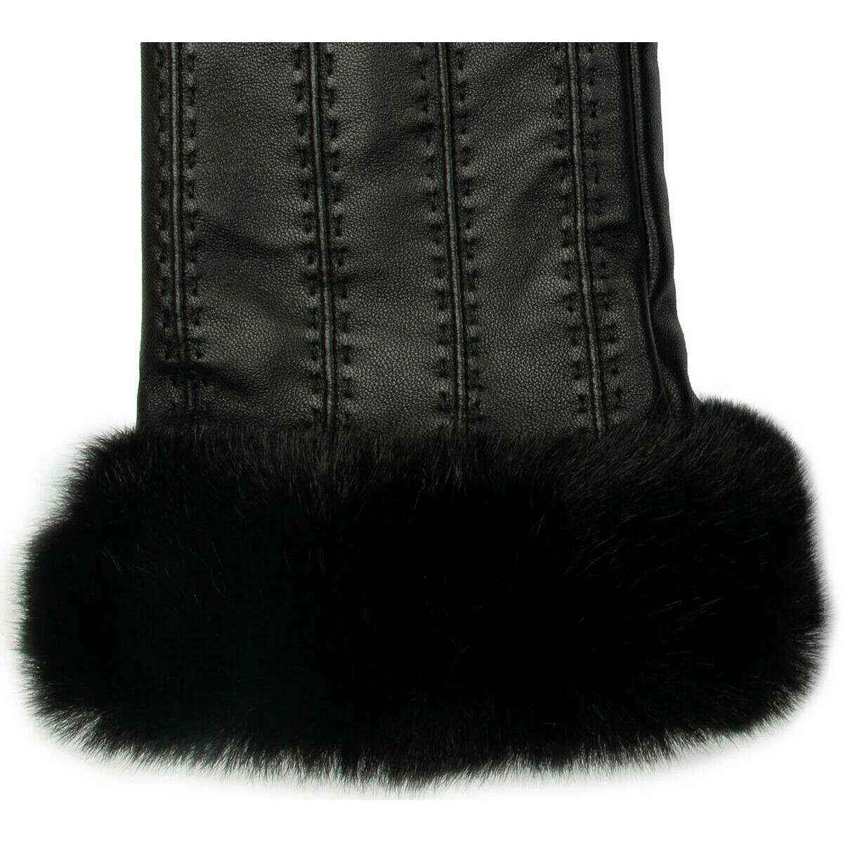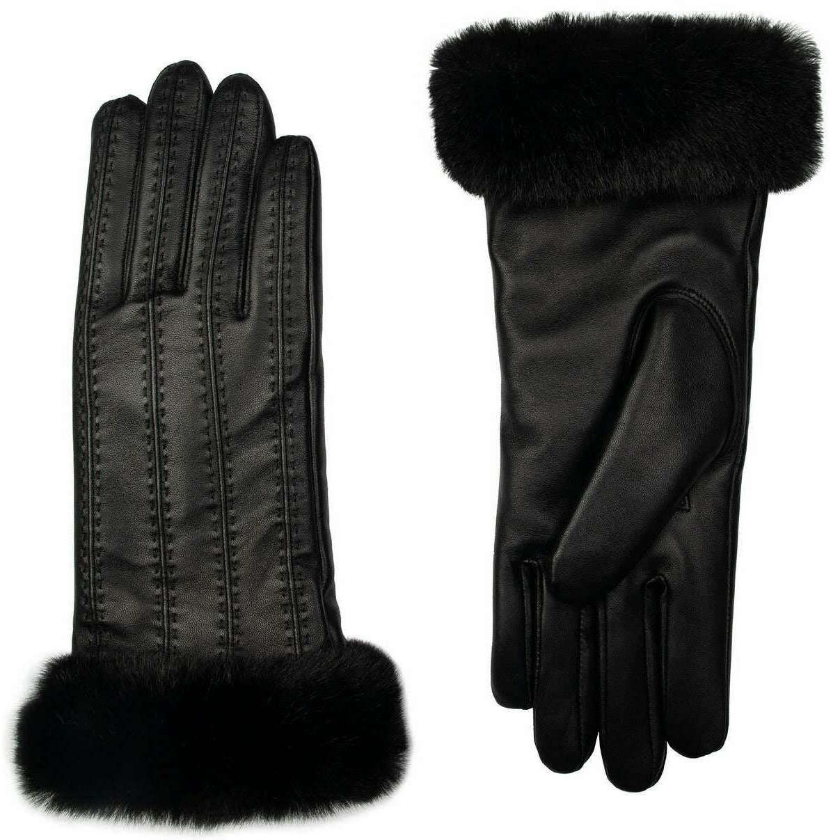 Te damskie rękawiczki z rękawicami z kontrastu Cassie wgnieceniem marki są wykonane ze 100% skóry fryzjerskiej i poliestrowej podszewki sztucznego futra i są prezentowane na czarno. Również czarne rękawiczki są zaprojektowane w zwykły wzór, wszystkie rękawiczki są w komplecie z tagami wgniecenia. Wgatysnowe kontrastowe rękawiczki kontrastowe - czarne to efektowny wybór, który sprawi, że będziesz wyglądać elegancko i stylowo na zimowych wycieczkach. Mankiety ze sztucznego futra dają luksusowy wygląd bez świadomości używanych zwierząt. Są wyłożone bardziej sztucznym futrem, nadając ci ręce oszałamiającą miękką i przytulną tarczę na elementy zimowe. Ta para jest zakończona dekoracyjnym pionowym projektem ściegu, co daje ponadczasowy wyrafinowany urok.
