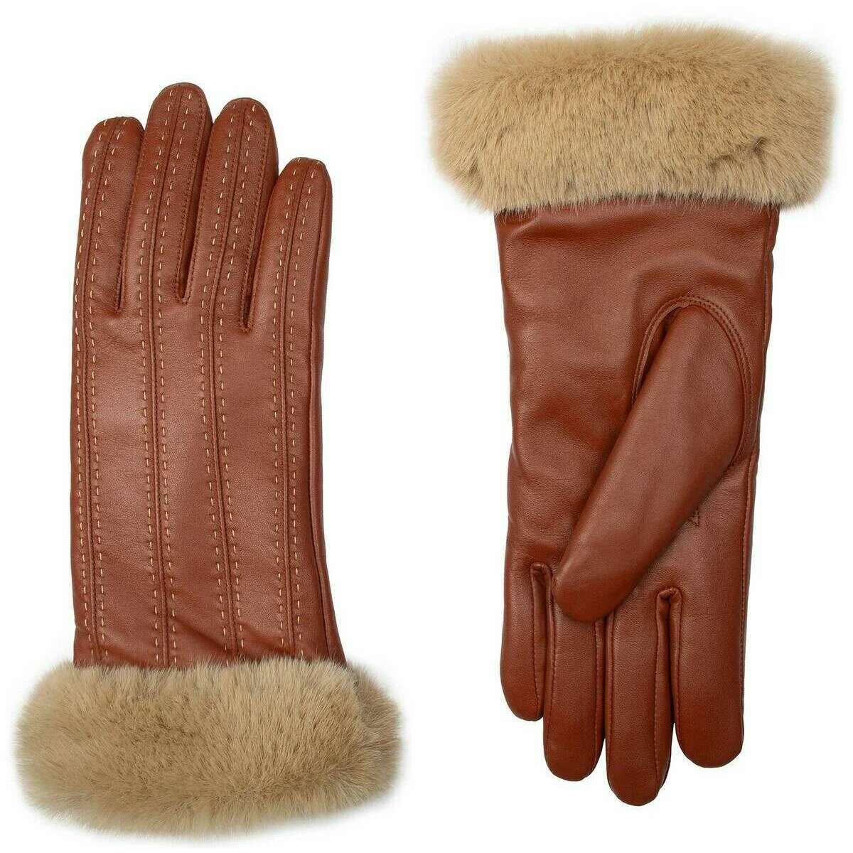 Rękawiczki skórzane Dents Cassie Contrast Stitching – koniakowa opalenizna/naturalny beż