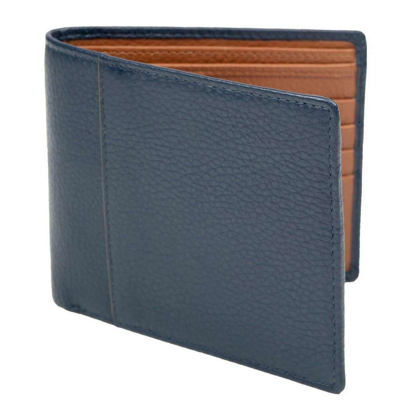 Ten męski portfel cherwell slim bifold marki Dents jest wykonany w 100% ze skóry licowej żwirowej i jest dostępny w kolorze granatowym. Mierzy 10 cm (wysokość) x 11 cm (szerokość). Wszystkie portfele są dostarczane w komplecie z przywieszkami wgnieceń. Portfel Dents Cherwell Slim Bifold - granatowy/koniakowy brąz ma osiem kieszeni na karty, dwie przegródki na banknoty i dwie wsuwane kieszenie. Ten składany portfel jest idealnym prezentem! Wewnętrzny panel ma wytłoczone logo Dents, co nadaje portfelowi wyrafinowany wygląd. Ten stylowy dodatek ma swobodną elegancję i jest podszyty tkaniną o diagonalnym splocie, zapewniającym gładki i pełen wdzięku wygląd.
