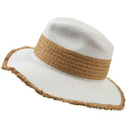 Wgniecenia strzępione słomy krawędzi fedora czapka - biały/naturalny beż