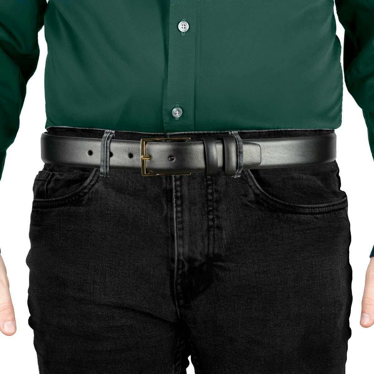 • Zaokrąglone krawędzie , Skórzana wyściółka , Kwadratowa klamra , Podwójny skórzany uchwyt , Trapezowa końcówka paska , Pięć otworów , Szerokość 3,5 cm