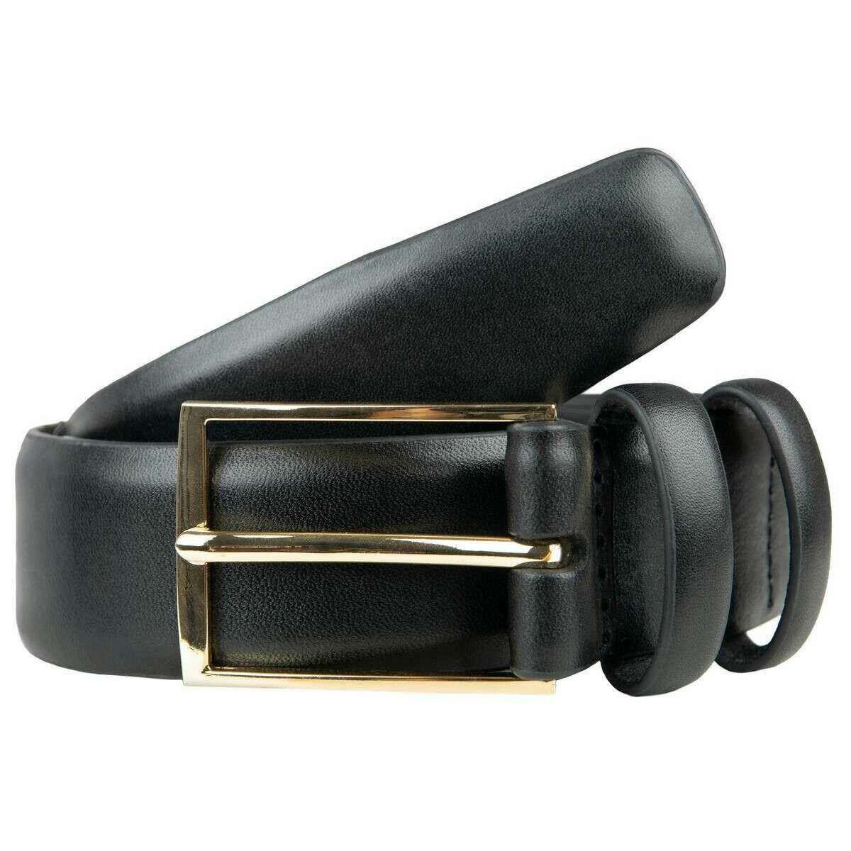 Ten męski skórzany pasek wyściełany złotą klamrą został wykonany w 100% ze skóry, w kolorze czarnym i pochodzi od marki Dents. Wszystkie paski są w komplecie z przywieszkami wgnieceń. Czarny pasek skórzany Dents ze złotą klamrą ma eleganckie i elastyczne wykończenie, które podkreśla jego luksusową jakość. Posiada gładkie i eleganckie uchwyty z podwójnej skóry zakończone błyszczącą złotą kwadratową klamrą. Ten model jest doskonałym wyborem na każdą okazję, ponieważ można go nosić na co dzień lub na bardziej oficjalne okazje.