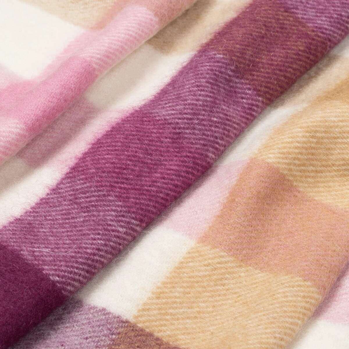 Szalik z kaszmiru w kratę Dents Heritage - bakłażanowy róż/biały