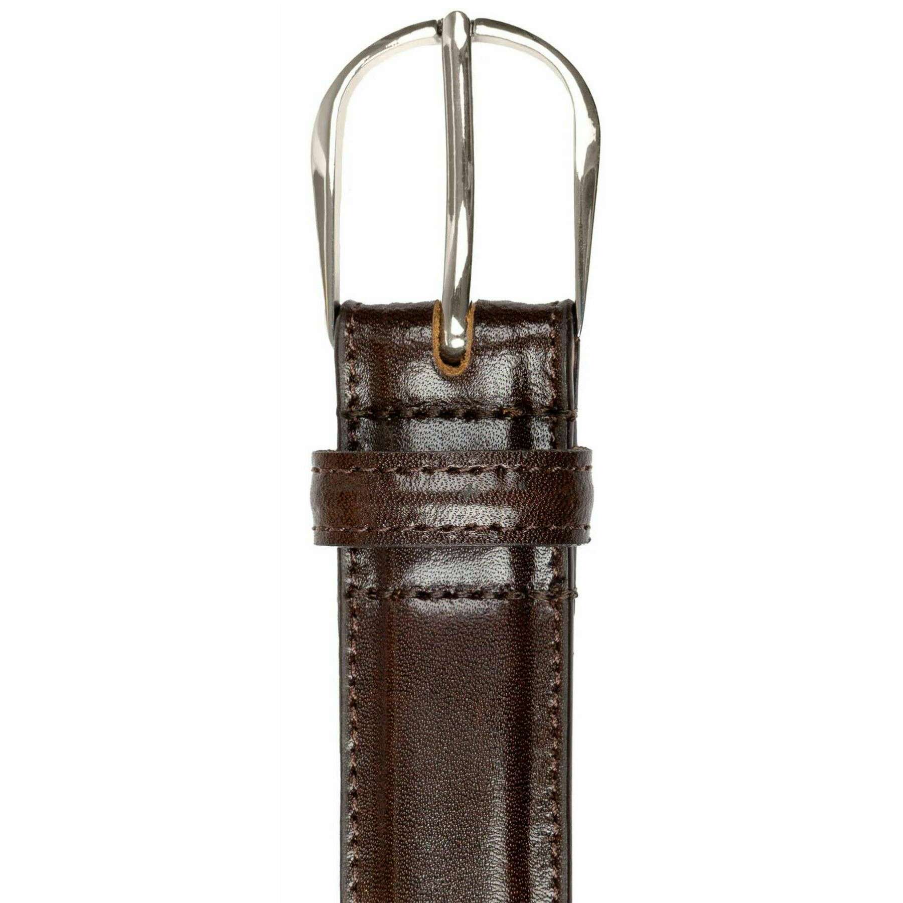 • Przeszyte krawędzie , Podszewka z nubukowego zamszu , Owalna klamra , Klamra niezawierająca niklu i ołowiu , Pojedynczy skórzany zaczep , Trapezowa końcówka paska , Pięć otworów , Szerokość 3 cm