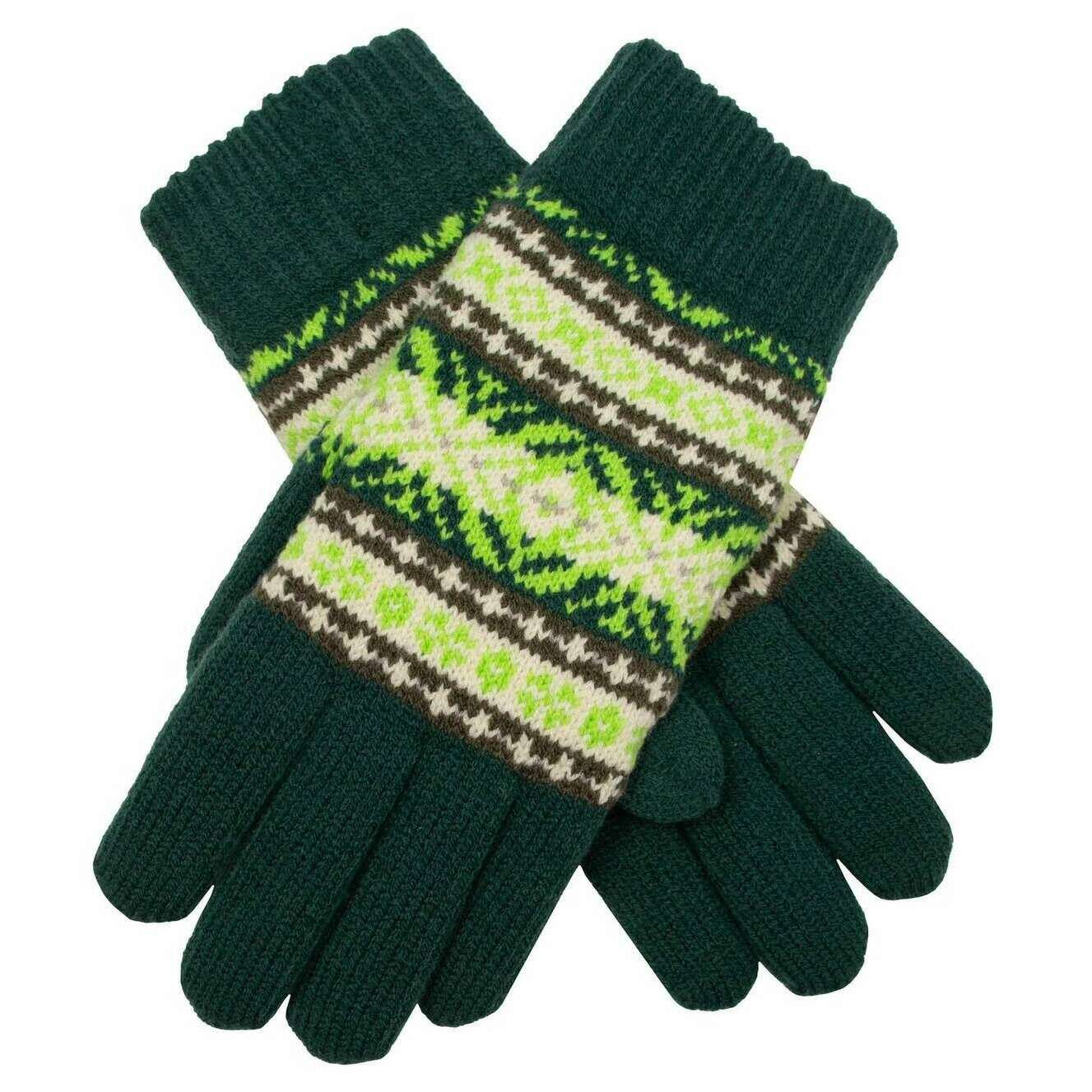 Wgniecenia Jacquard Fair Isle Knitte Rękawiczki - Olive Green