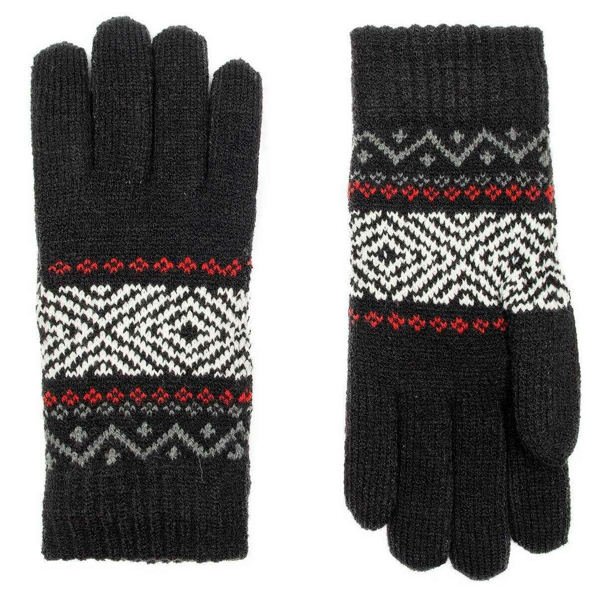 Wgniecenie żakardowe geometryczne rękawiczki z dzianiny - czarne
