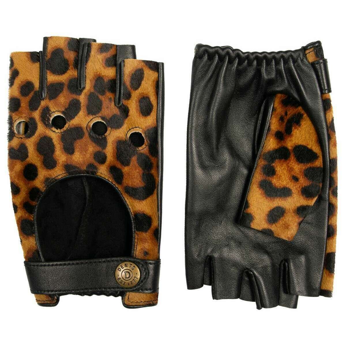 Damskie rękawiczki do jazdy typu nyla w panterkę/czarne, wykonane w 100% ze skóry kucyka, zaprojektowane przez projektanta Dents. Również rękawiczki w kolorze lamparta/czarne mają unikalny wzór. Wszystkie rękawice są wyposażone w metki z wgnieceniami. Rękawiczki do jazdy z półpalcami Dents Nyla – lampart/czarne idealnie nadają się do eleganckiego i stylowego wyglądu za kierownicą. Konstrukcja bez podszewki zapewnia lepsze dopasowanie, a otwory na kostki i dziurka od klucza z tyłu dodają dekoracyjnych akcentów, a jednocześnie są praktyczne. Elastyczne nadgarstki zapewniają bezpieczne i wygodne noszenie, a wycięte plecy zapewniają wentylację i elastyczność. Jedź stylowo dzięki tym eleganckim i praktycznym rękawiczkom.