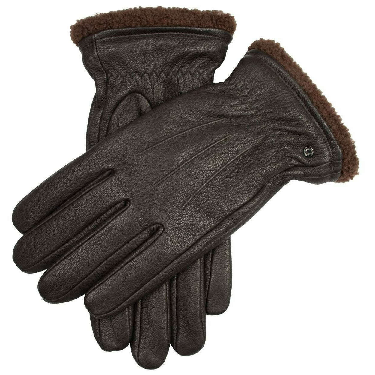 Rękawiczki skórzane Dents Shrewsbury z podszewką z polaru - brązowe
