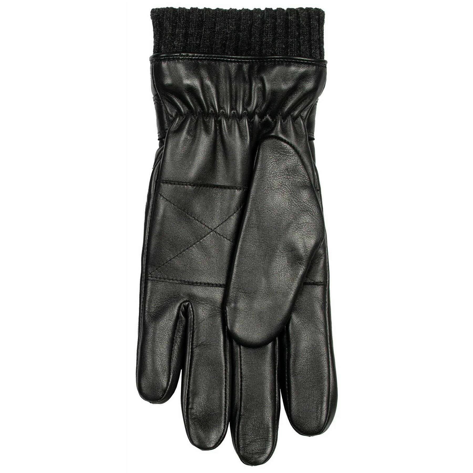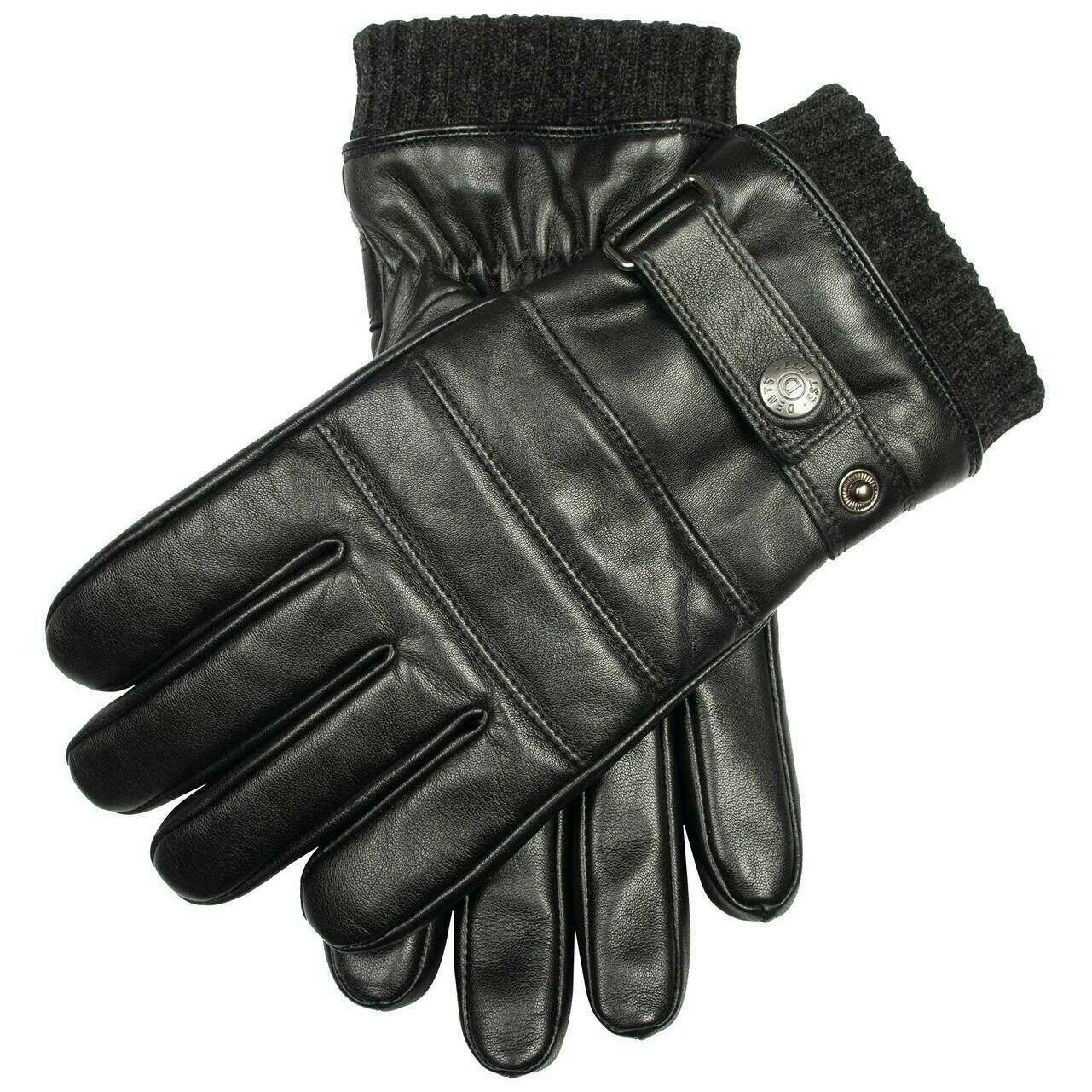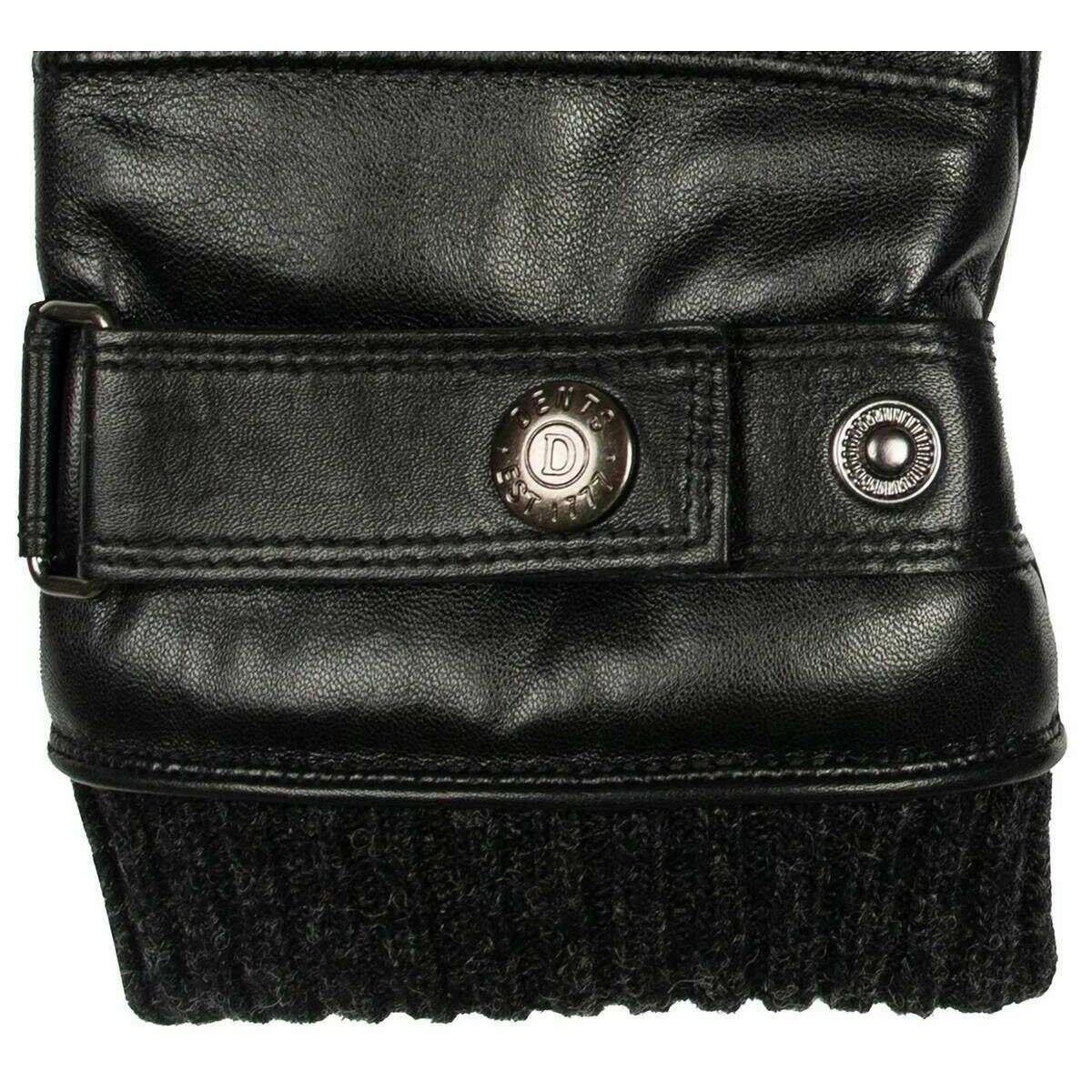 Rękawiczki skórzane Dents Skipton z dzianinowymi ściegami mankietowymi - czarne