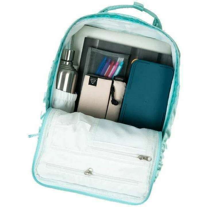 Ten plecak na makaron dziewcząt dla kobiet został wykonany z 100% nylonu, przedstawiony w niebieskim kolorze i pochodzi z marki. Mierzy 38 cm (wysokość) x 27 cm (szerokość) x 13 cm (głębokość). Zaleca się sprzątanie wilgotną szmatką, nie myj się, nie czyszczyć, nie wybielają się, nie upadaj na sucho, aby utrzymać tę torbę w dobrym stanie. Wszystkie torby są kompletne w opakowaniu pączkowym. Plecak Macaroon Girlitude Ponpack - Moonstone Blue tworzy oszałamiające codzienne akcesorium, które nie będzie elegancki i dziewczęcy styl, a jednocześnie niosąc swoje niezbędne rzeczy. Został wykonany z materiału odstraszającego wodoodpornego, który zapewnia mu wytrzymanie wszystkich rodzajów pogody i nie zostanie zrujnowane w deszczu. Zarówno zewnętrznie, jak i wewnętrznie ten kawałek ma wiele komorów i kieszeni, w tym butelkę z wodą i tablet. Kończąc satynowy wygląd, a także dekoracyjne marszczenia, wstążki i uroki, to naprawdę będzie najlepszym przyjacielem dziewczyny. Ten kawałek ma pojemność, jeśli 16L.