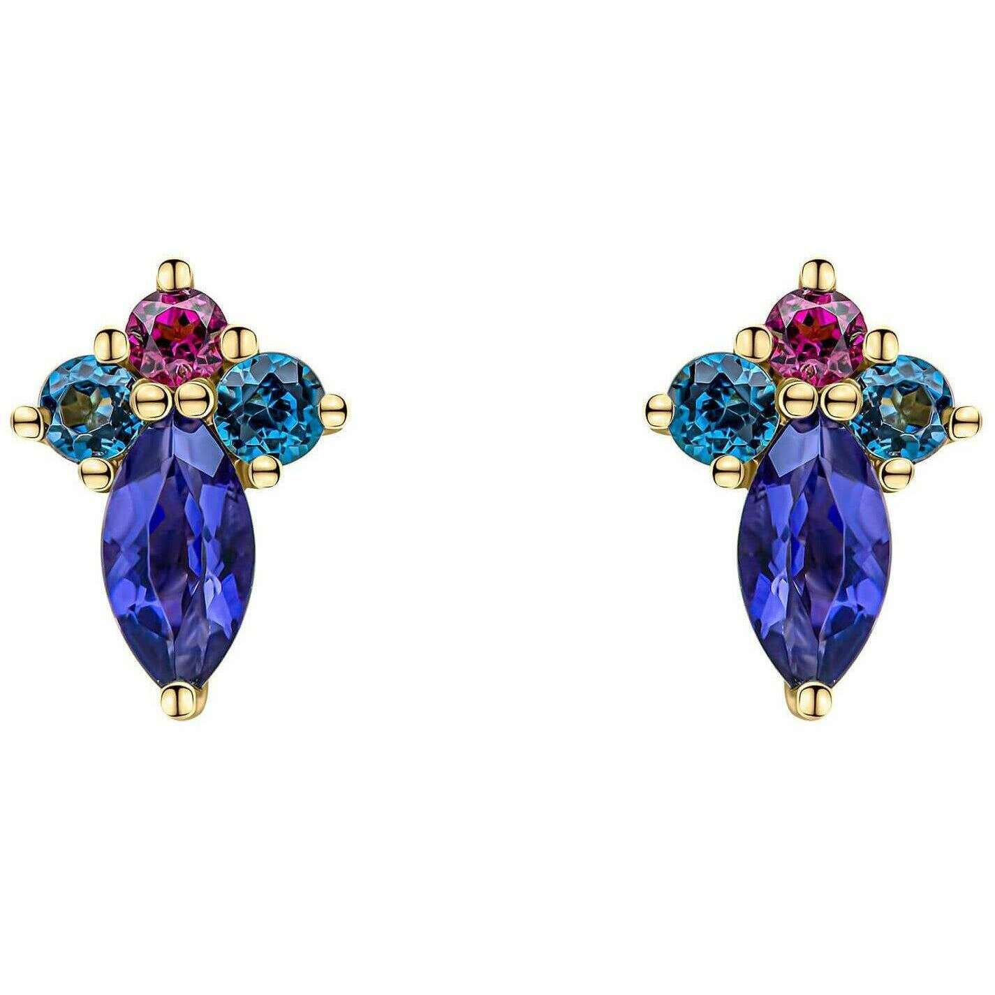 Kolczyki w kształcie klastra z 9-karatowego złota Barcelona Elements – złote/niebieskie/różowe