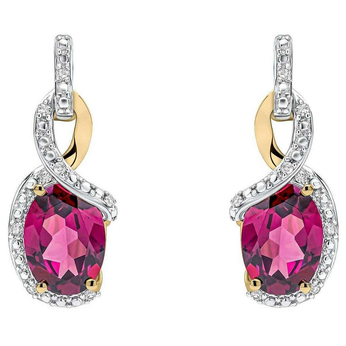 Eleganckie kolczyki z 9-karatowego złota Elements - eleganckie, skręcane granaty - złoto/czerwone