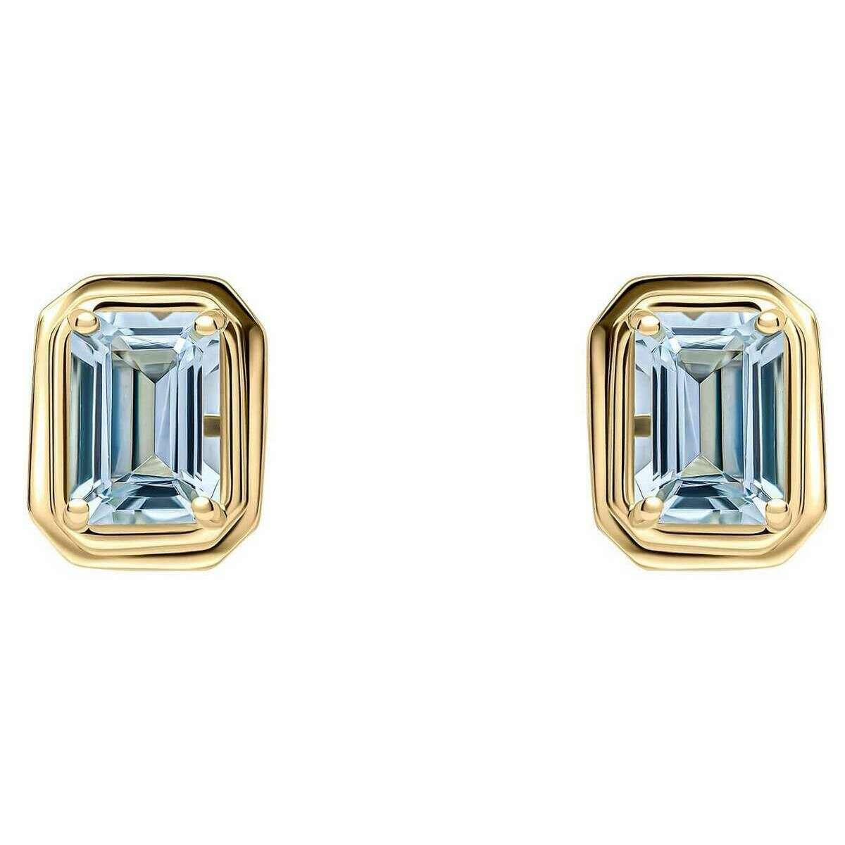 Kolczyki sztyfty z 9-karatowego złota z wydłużonym ośmiokątem i akwamarynem Elements - złoto/niebieskie