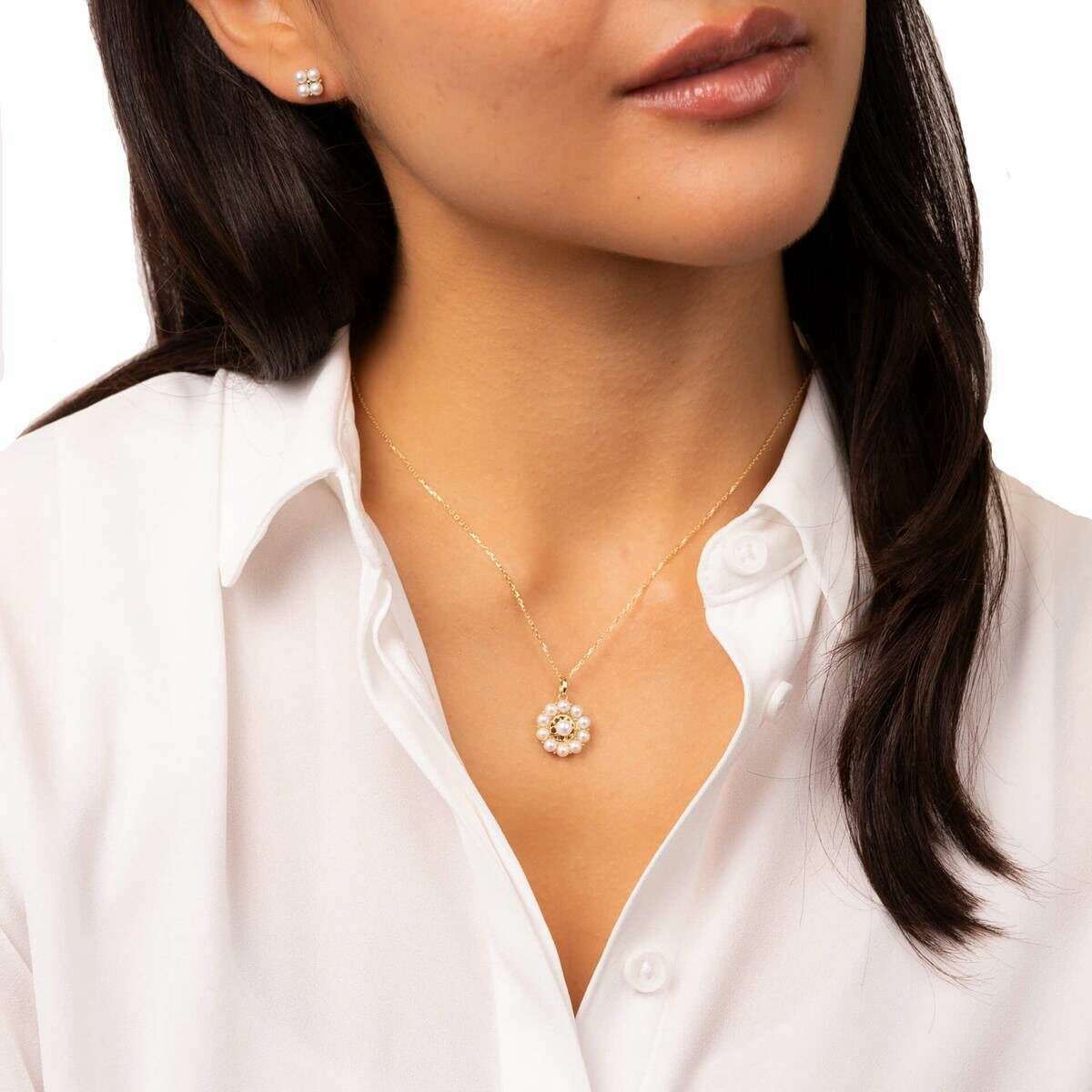 Wisiorek Elements ze złotej kwiatowej perły słodkowodnej z 9-karatowego złota - złoty/biały