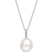 Złoty wisiorek Elements z 9-karatowego złota, ponadgabarytowych perł barokowych i topazu - srebrny/biały