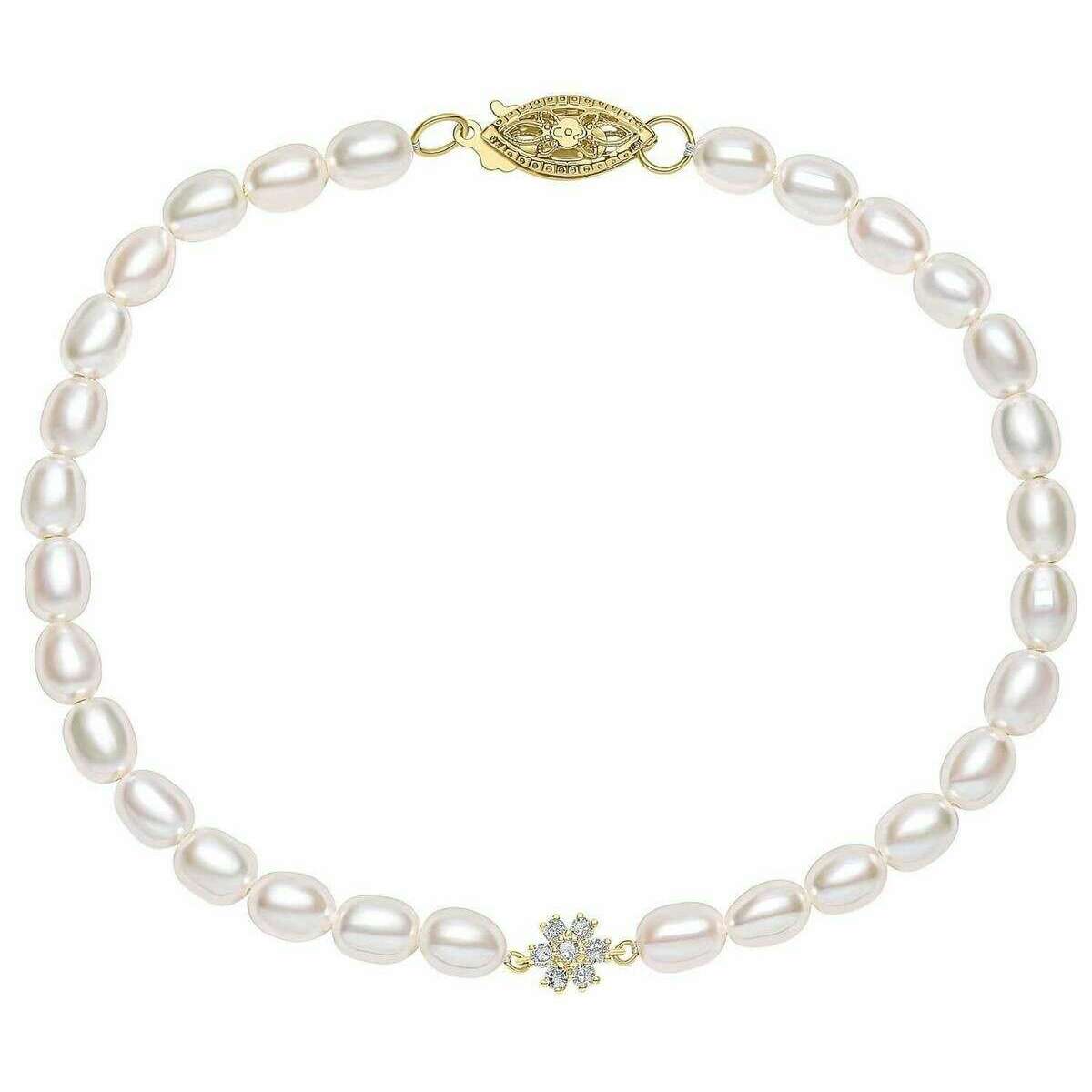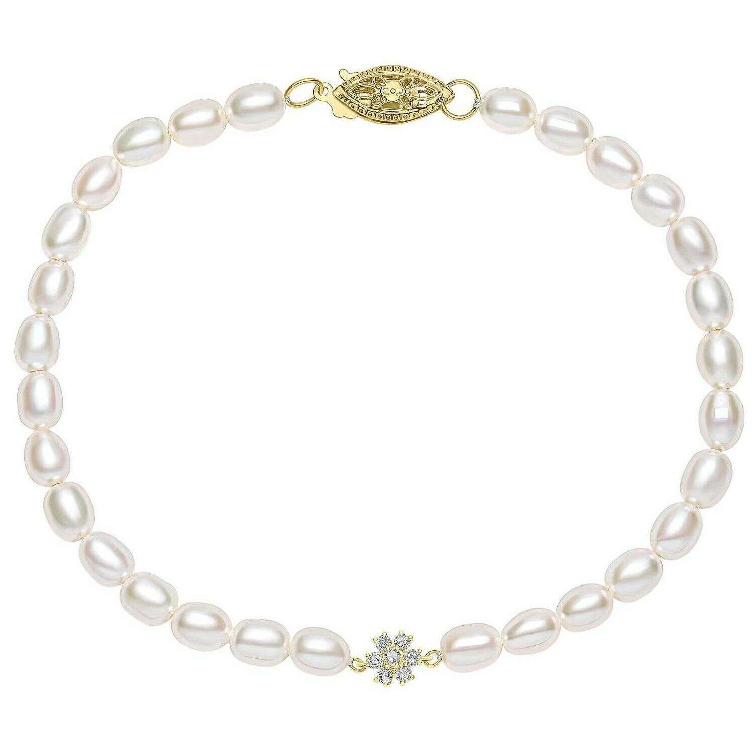 Bransoletka z 9-karatowego złota z pereł i kwiatów Elements - złoto/biała