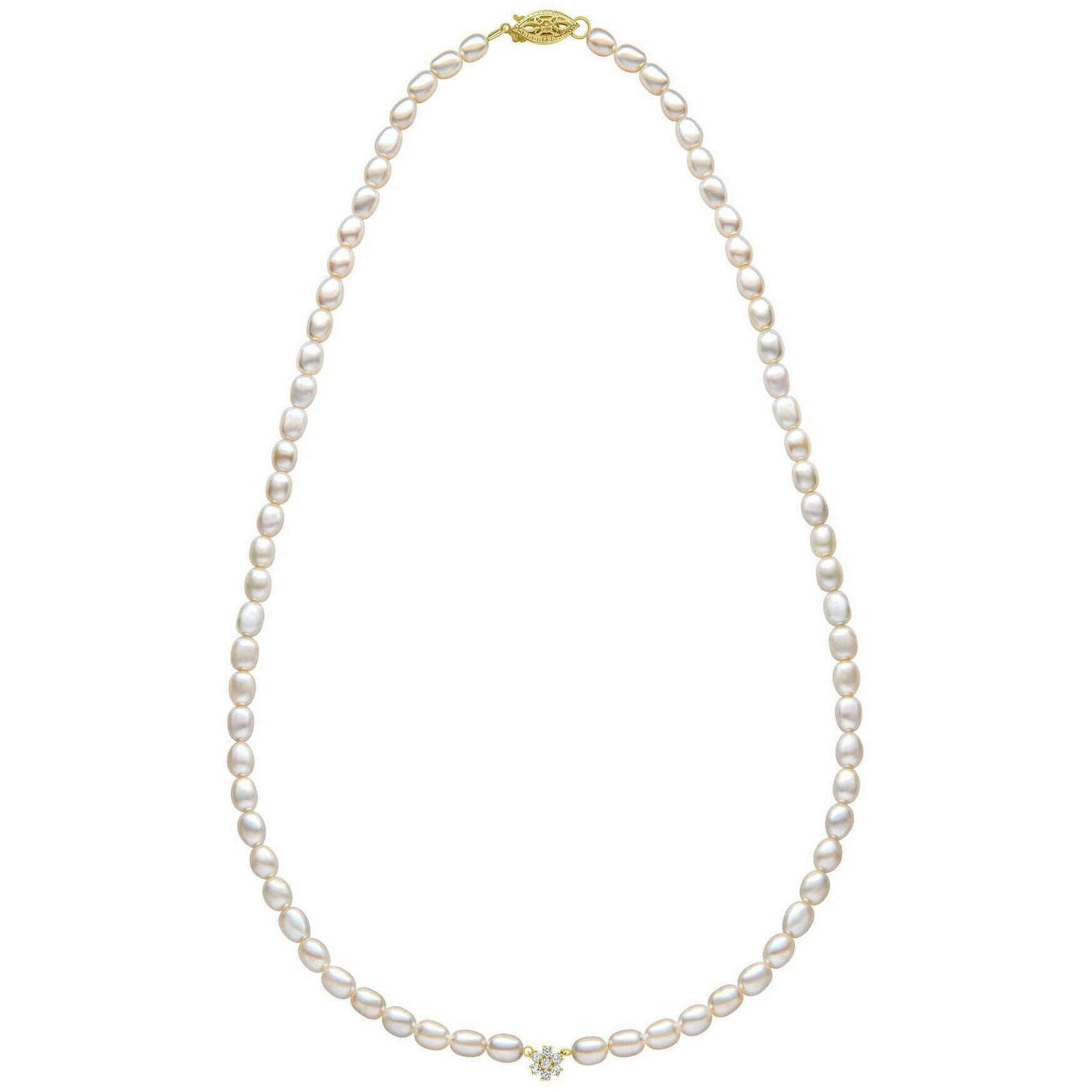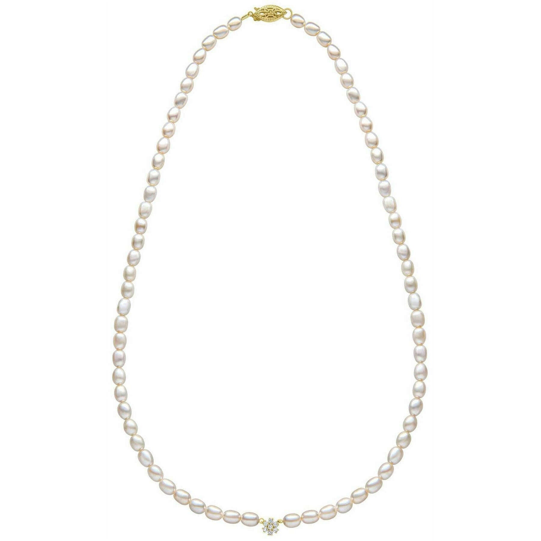 Naszyjnik z 9-karatowego złota z pereł i kwiatów Elements - złoty/biały