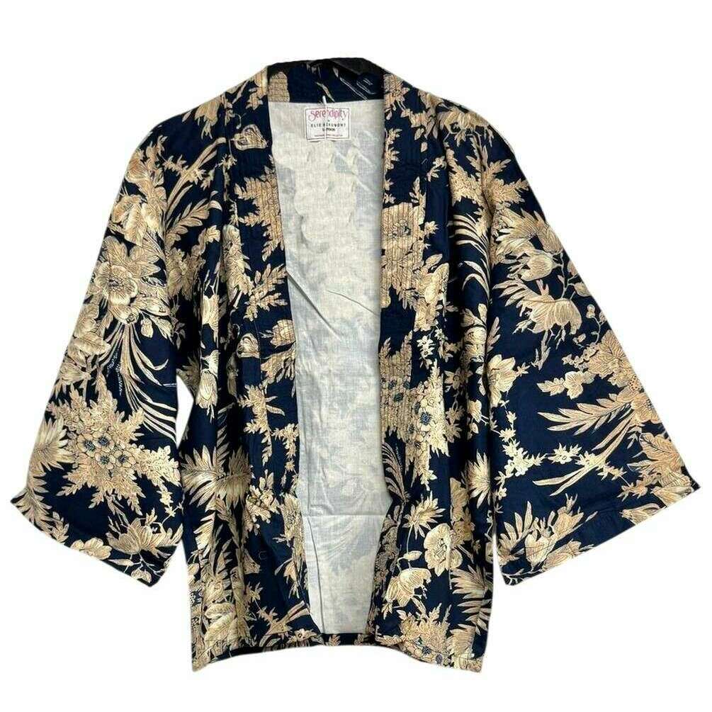 Przedstawiamy krótkie kimono damskie marki Elie Beaumont, wykonane w 100% z naturalnej bawełny w kolorze granatu o północy. Wszystkie kurtki są dostarczane w komplecie z opakowaniami Elie Beaumont. Krótkie kimono Elie Beaumont Serendipity – Midnight Blossom Blue zapewni Ci naprawdę wyjątkowy wygląd, który z pewnością pokochasz! Odważne kolory i misterny design sprawiają, że ta kurtka kimono jest naprawdę wyjątkowa. To kimono jest w pełni podszyte, oddychające i ma długie rękawy.