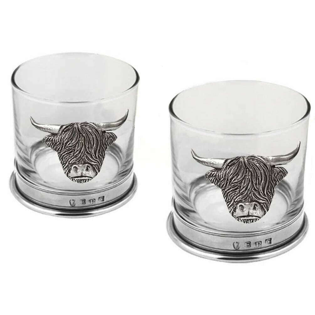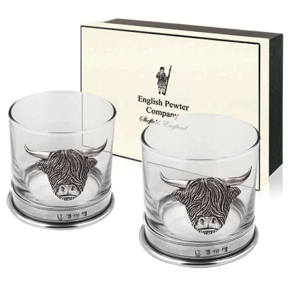 English Pewter Company 11 unz Double Highland Cow Tumbler - Silver/Clear