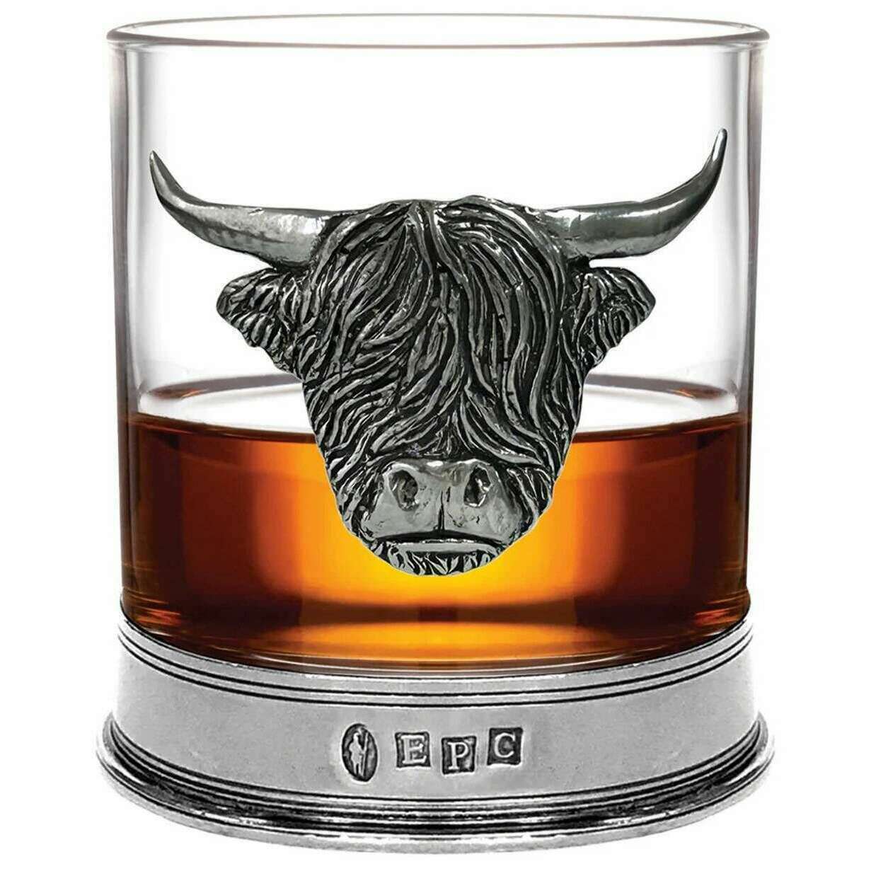 English Pewter Company 11 unz Highland Cow Tumbler - Silver/Clear