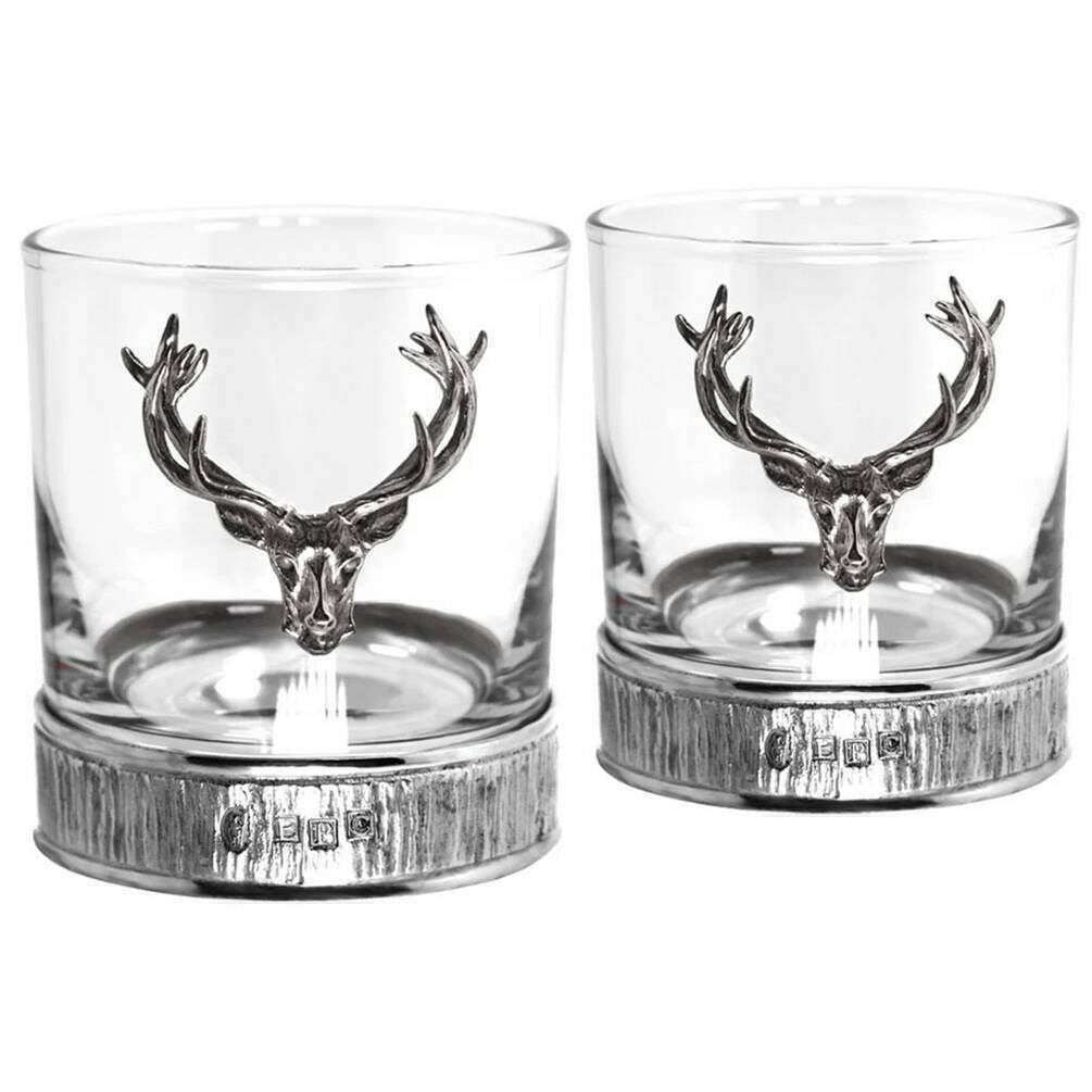 English Pewter Company 11 unz Majestic Stag Double Tumbler Zestaw - Silver/Clear
